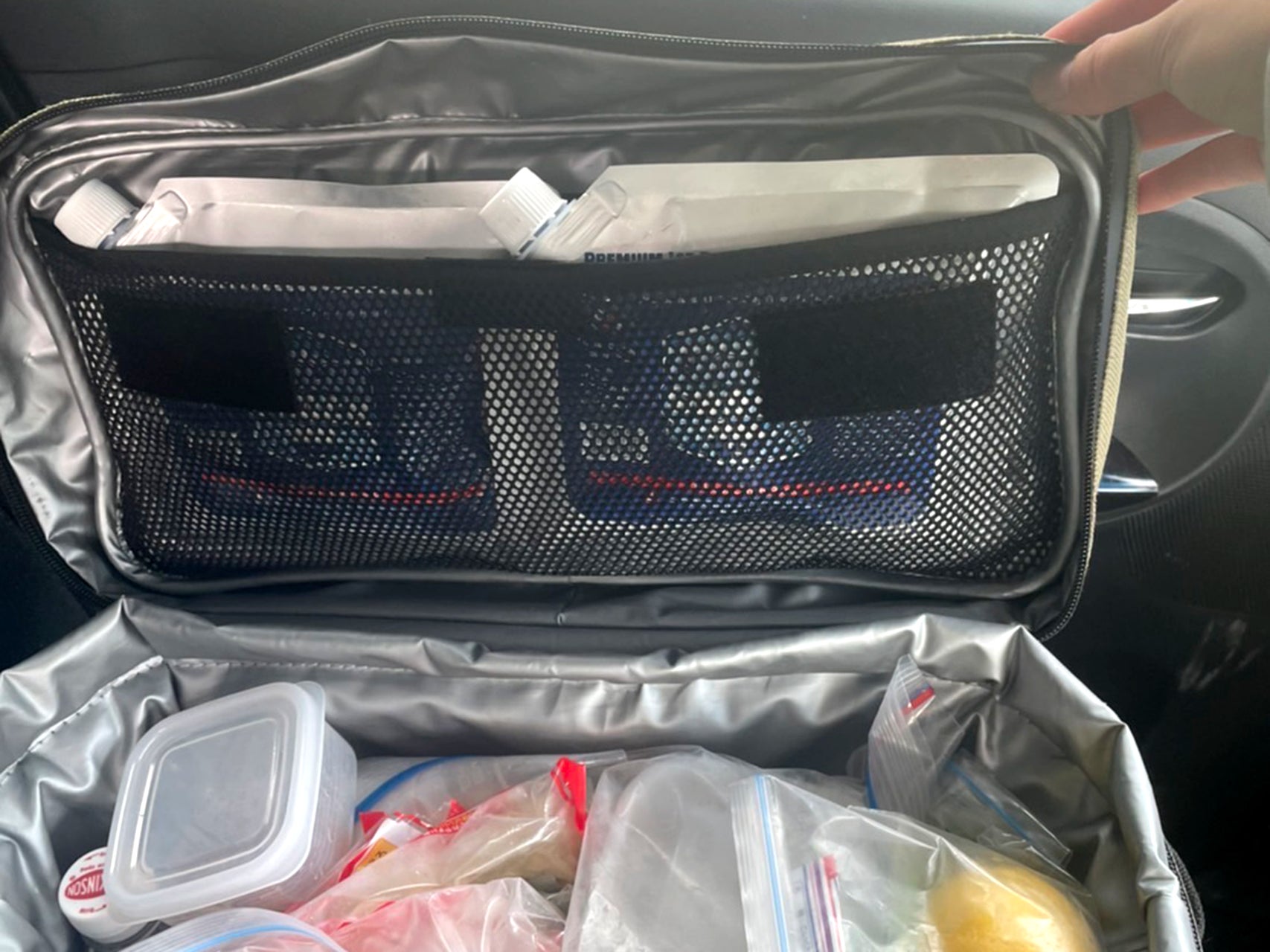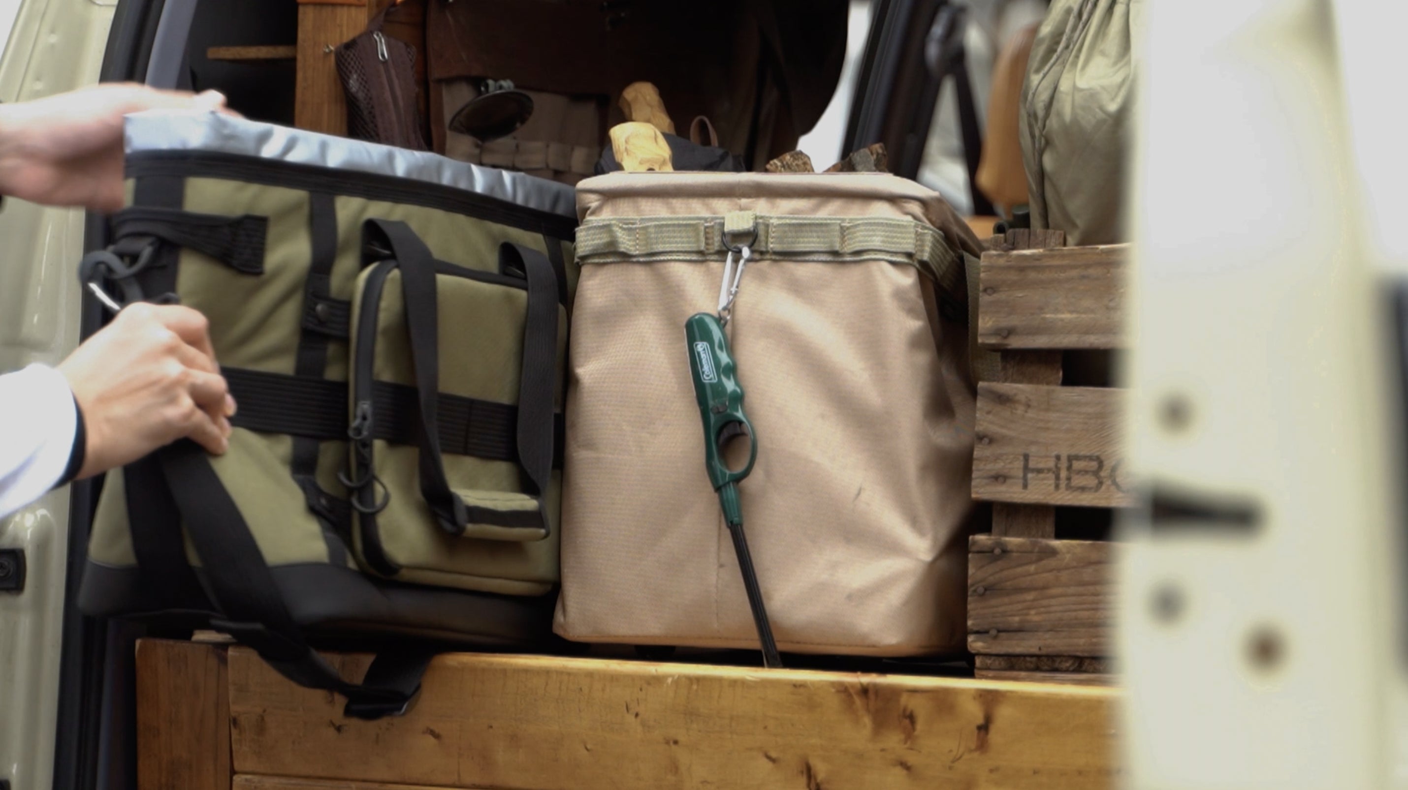 車をサイトに横付けできる場合は、手提げのクーラーバッグとしてお使いいただけます。