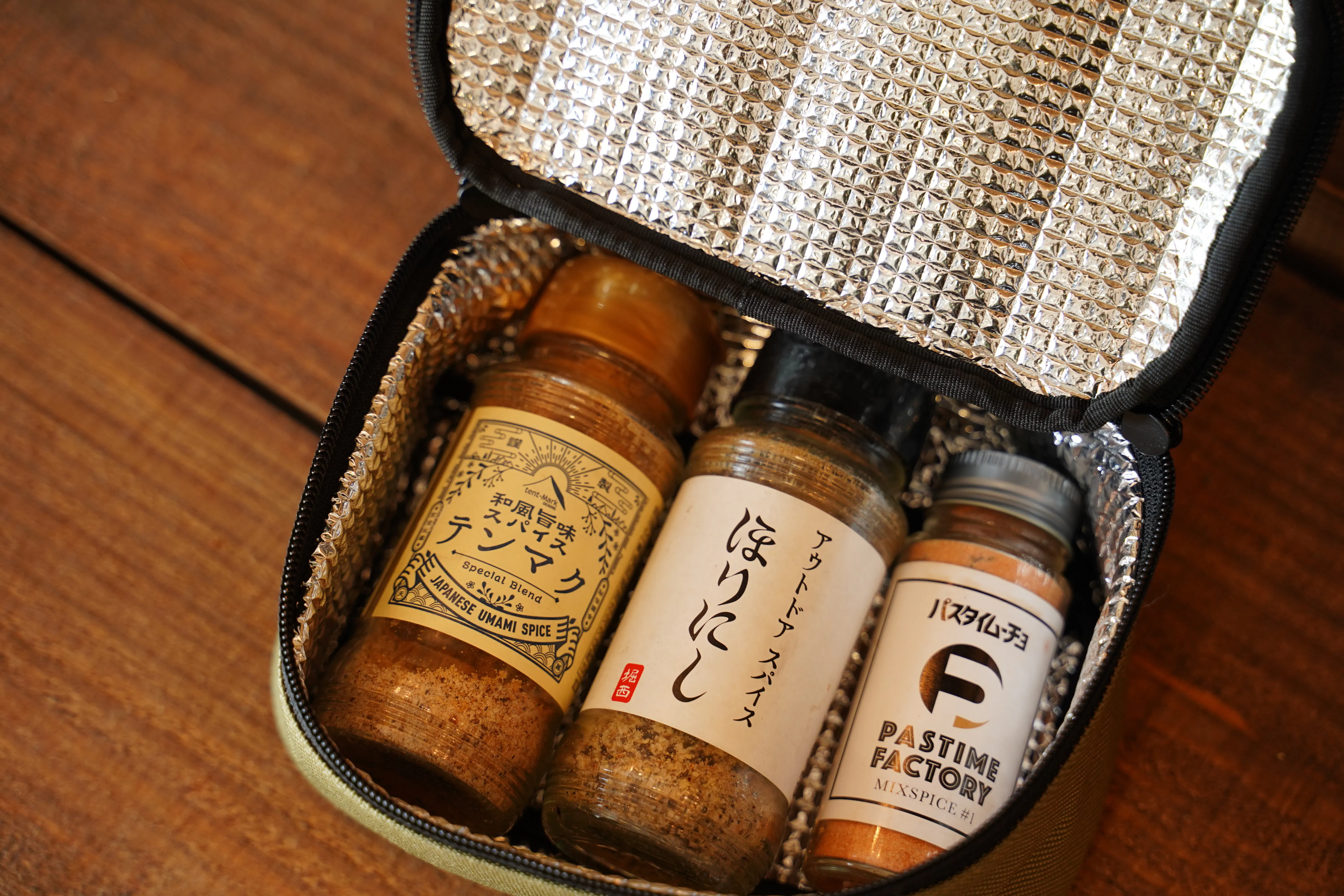 ゾルゲクーラーのフロントには、調味料やキッチン用品、財布やスマホなど、ちょっとした細々したものを収納できるフロントポケットを用意しました。