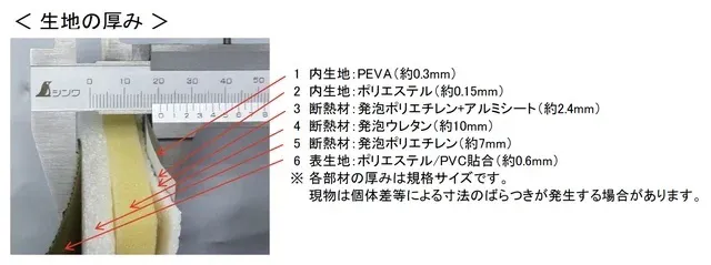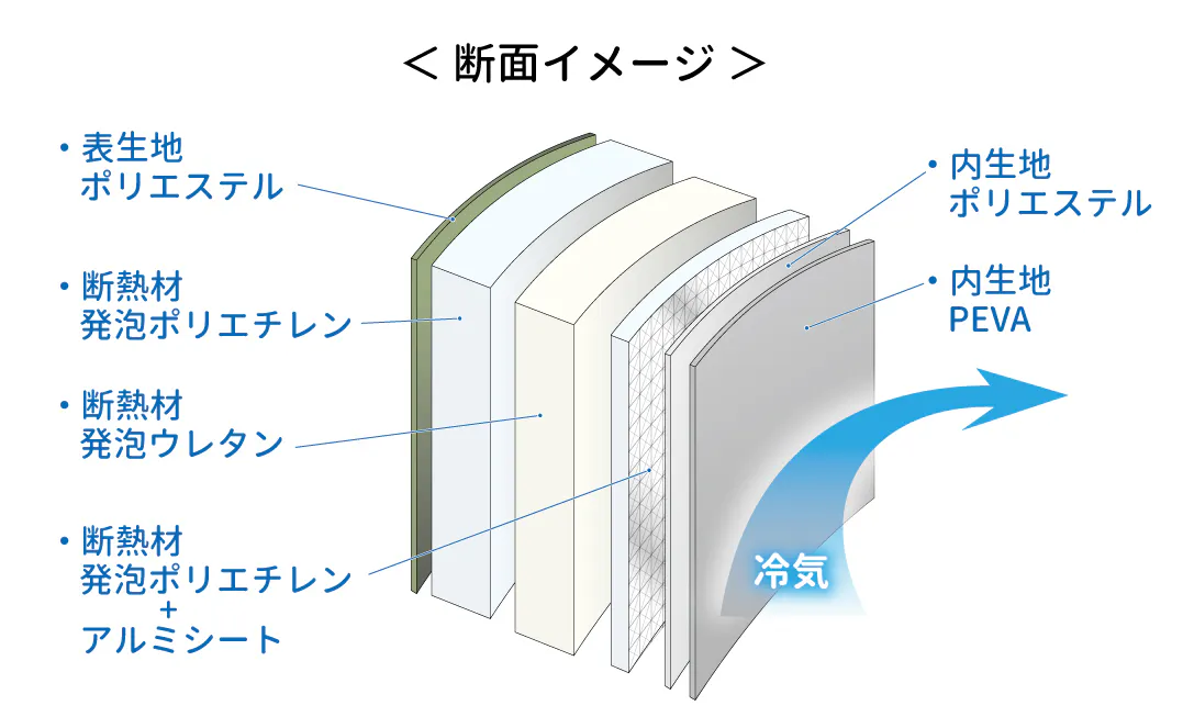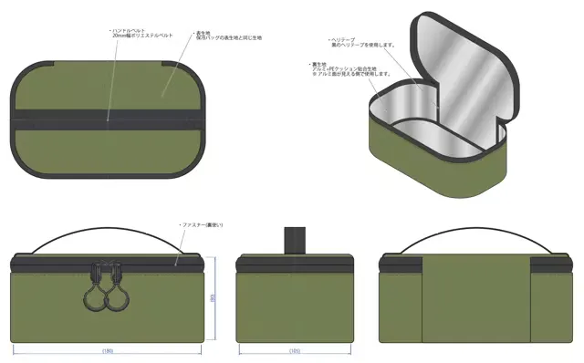 ソフトクーラー最強を目指すために、何度もテストを繰り返した結果、内生地を2枚組み合わせ、3つの断熱材で保冷力をアップさせました。