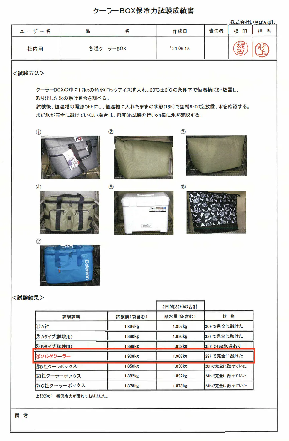 さらに、保冷力テストでは、あの最強クーラーと呼び声の高い、ソフトクーラーに匹敵する保冷力を実現しました。