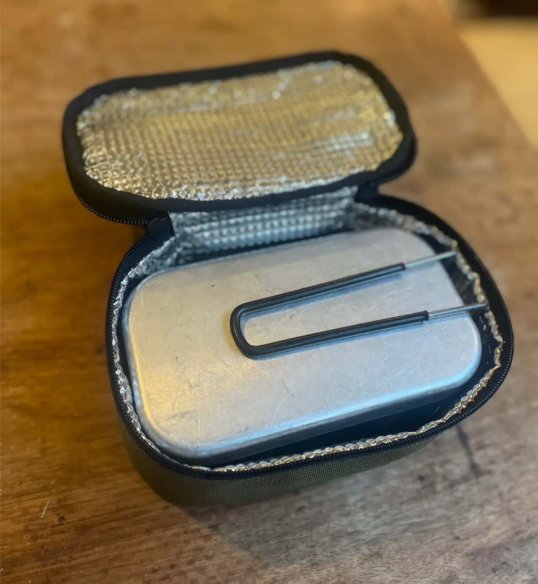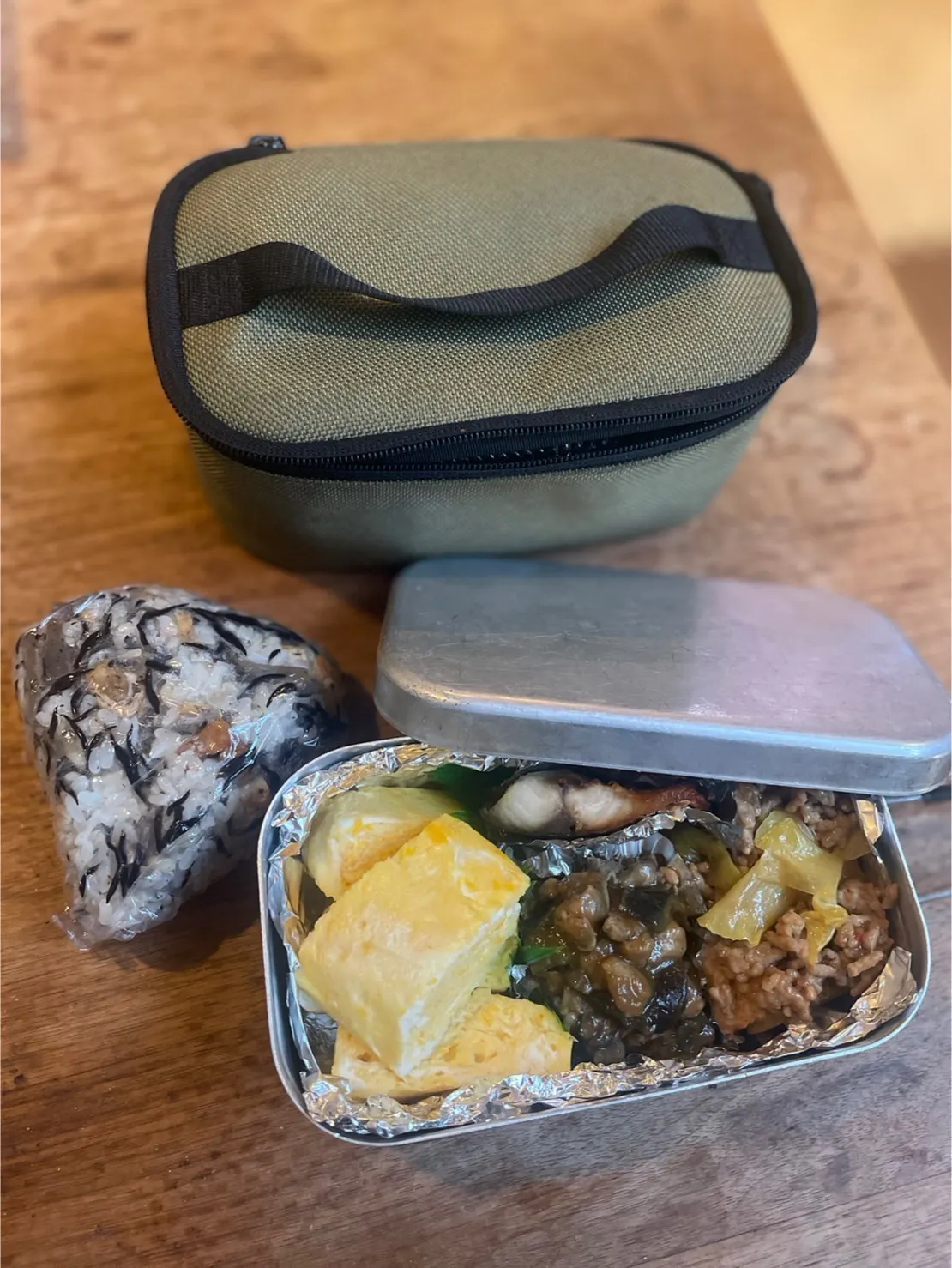 メスティンの保温中にも持ち運べるハンドル付き。お弁当ケースや調味料入れにも活躍します。