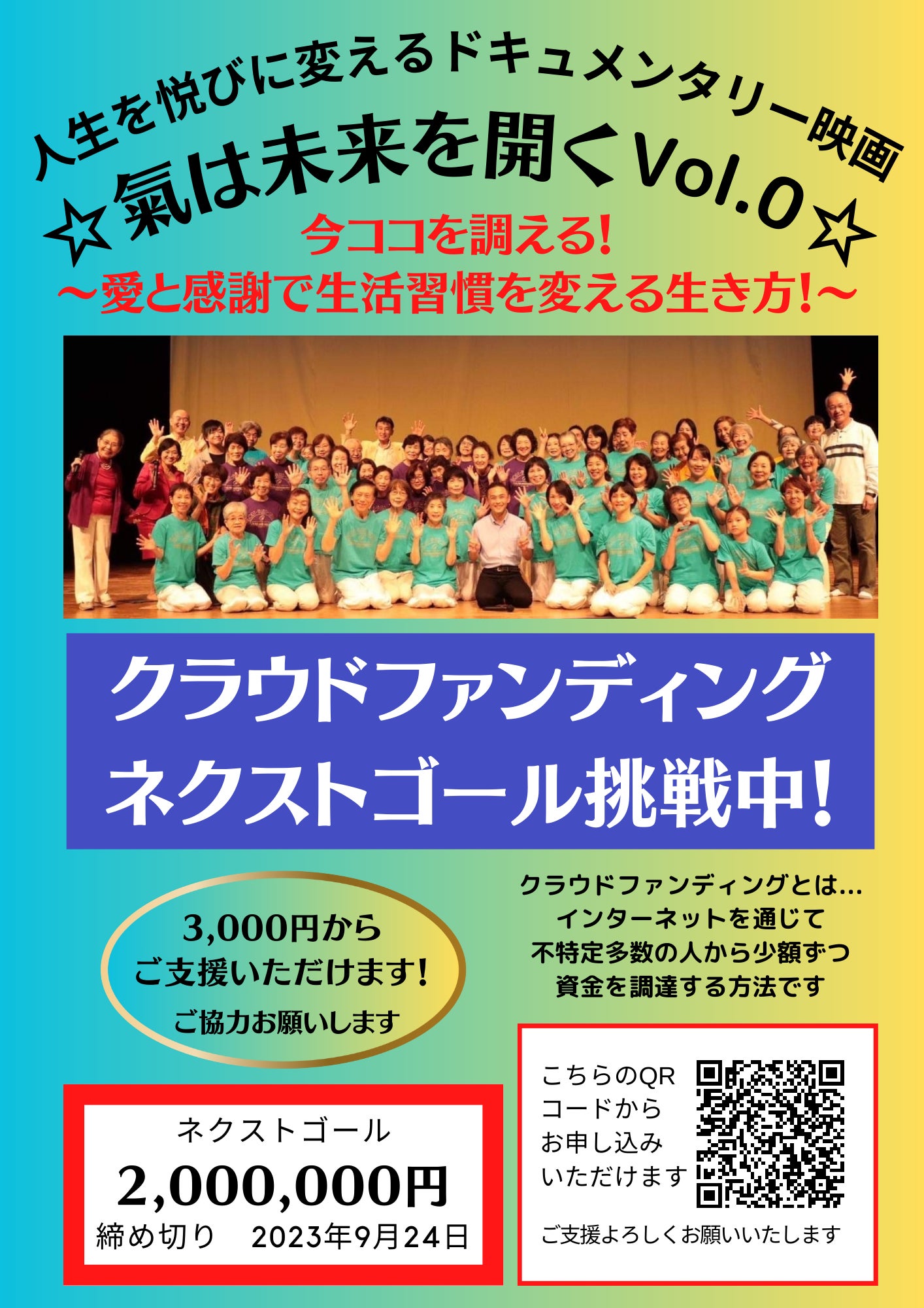 皆様のご支援のお陰でファーストゴール100万円を初日にクリアすることができました。次は映画のクオリティを高めるために、私たちの思いをより多くの方に届け仲間の輪を広げるために、ネクストゴール200万円に挑戦します!Webサイト制作や宣伝用プロモーション費用、編集ソフトや機材のアップデートなどに使わせていただきます。ご支援ご協力の程をどうぞよろしくお願いいたします!【拡散希望!】https://bit.ly/3seCbvb☆ご支援に感謝をこめて!先日82歳の誕生日を迎えた監督外山美恵子の月例特別講座~ゼロポイントフィールドで生きる!【愛と感謝の宇宙軸ワーク】~第38回「宇宙意識瞑想」を『支援感謝御礼無料セミナー』として、今まで支援していただいた皆様、またこれから支援していただく皆様に無料でお届けいたします(期間限定8月26日お申し込み分まで)。↓お申し込みはこちらから!皆さまのご参加お待ちしてます。https://bit.ly/3DD4QfH