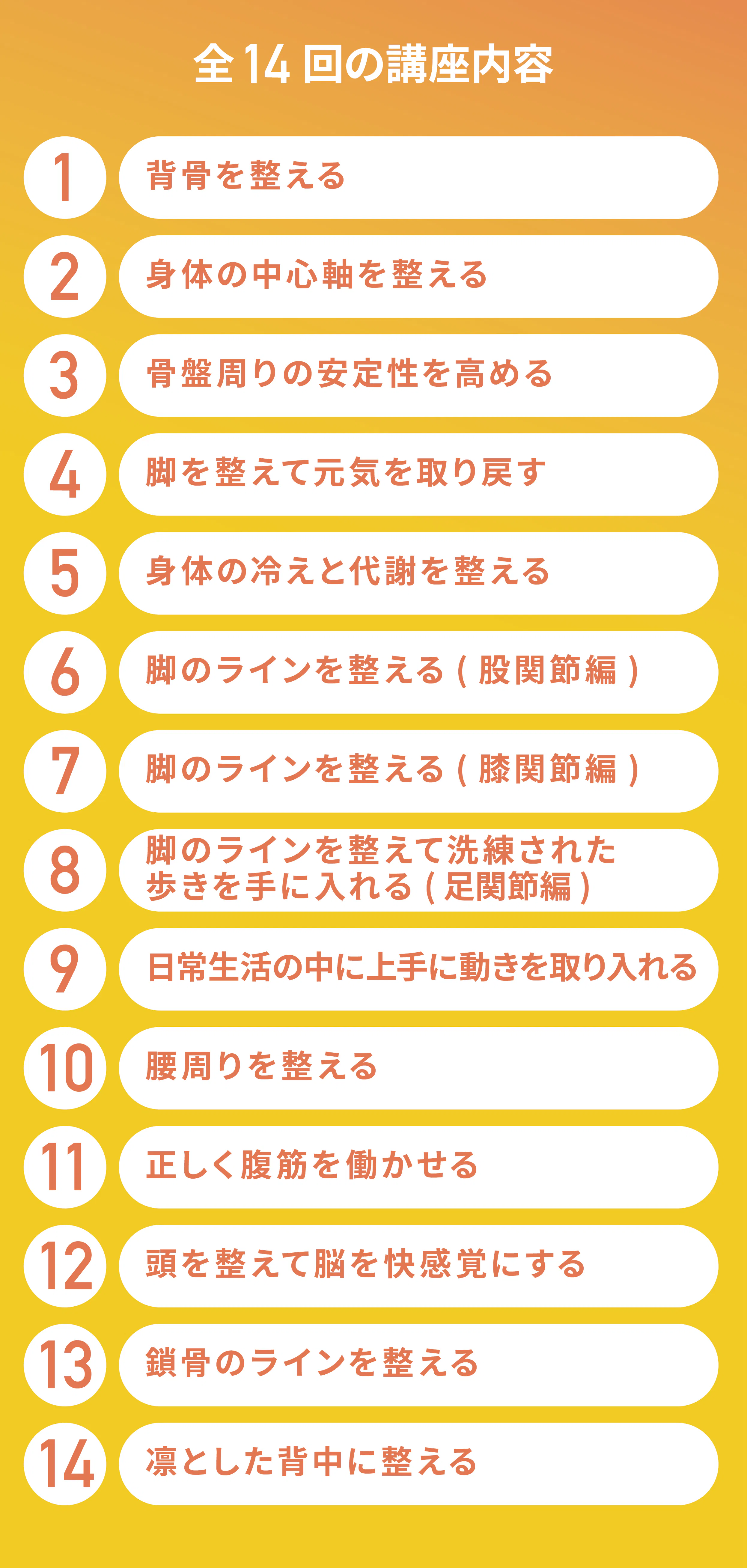 改良して、できたのが14回で体全体をセルフケアできるプログラムです。