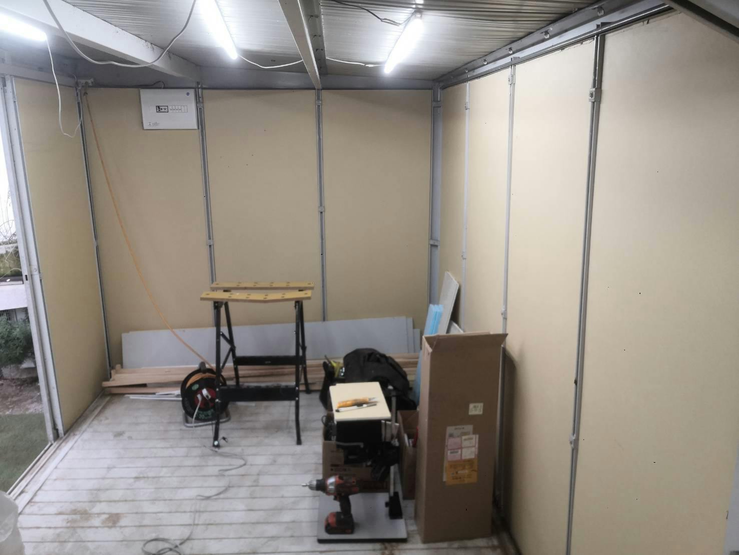 少しずつですが、内装工事を進めています。半分くらい、ボードを貼りました。