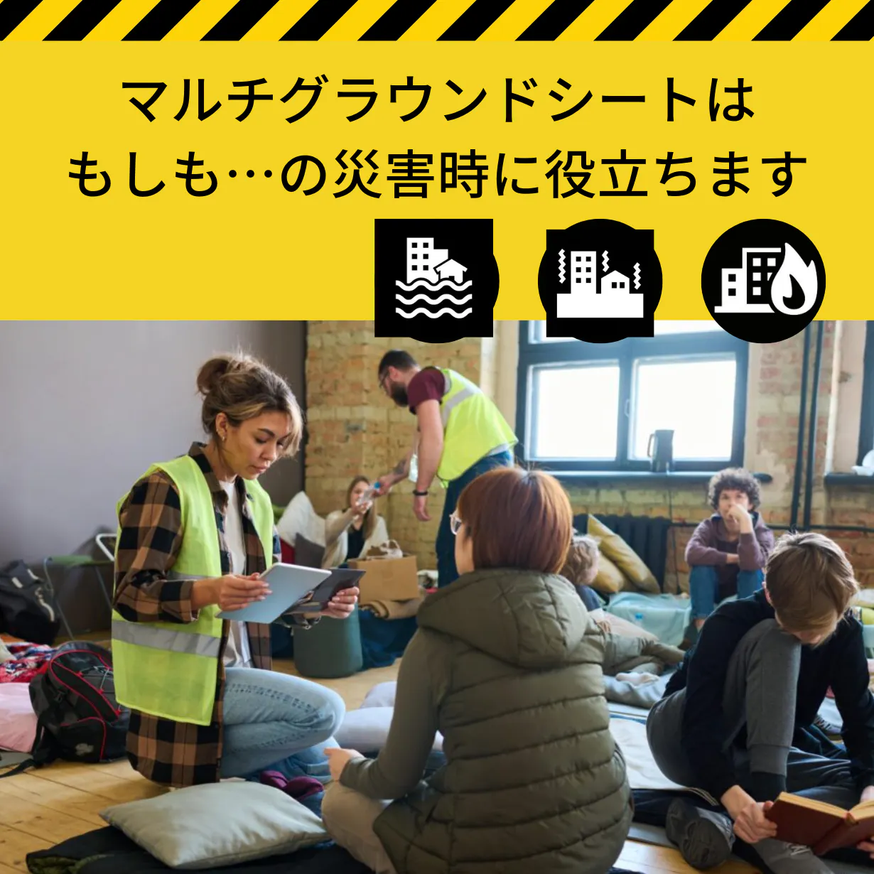 電気やガス、水道などのライフラインが止まった時に備えて、普段から「マルチグラウンドシート」を備蓄しておきましょう。