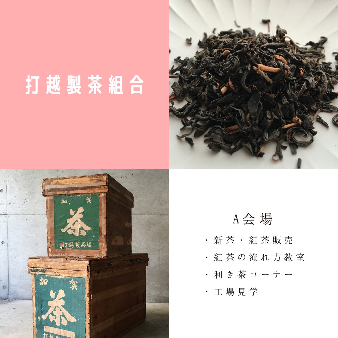 出展者様のご紹介♪A会場の「打越製茶組合」では、下記の内容を行います。・新茶と紅茶の販売・紅茶の淹れ方教室・利き茶・工場見学紅茶の淹れ方教室では、打越の紅茶を美味しく淹れるコツを教えてもらえます。また、同じ茶葉でも製茶の方法によって味が変わるのです。利き茶コーナーではそれを体験出来ます!