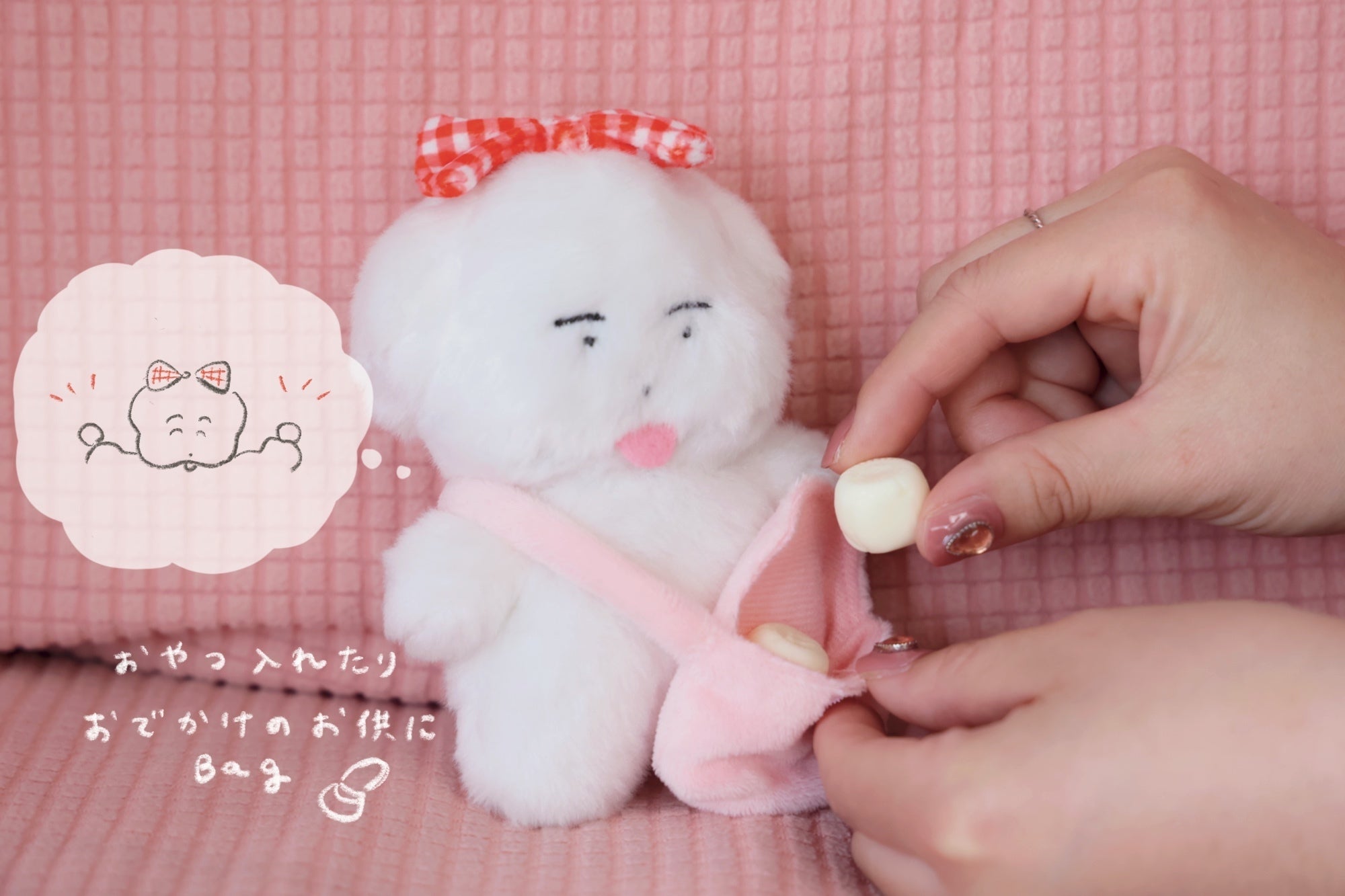 取り外し可能なバッグを持ったワヌ美ちゃん。