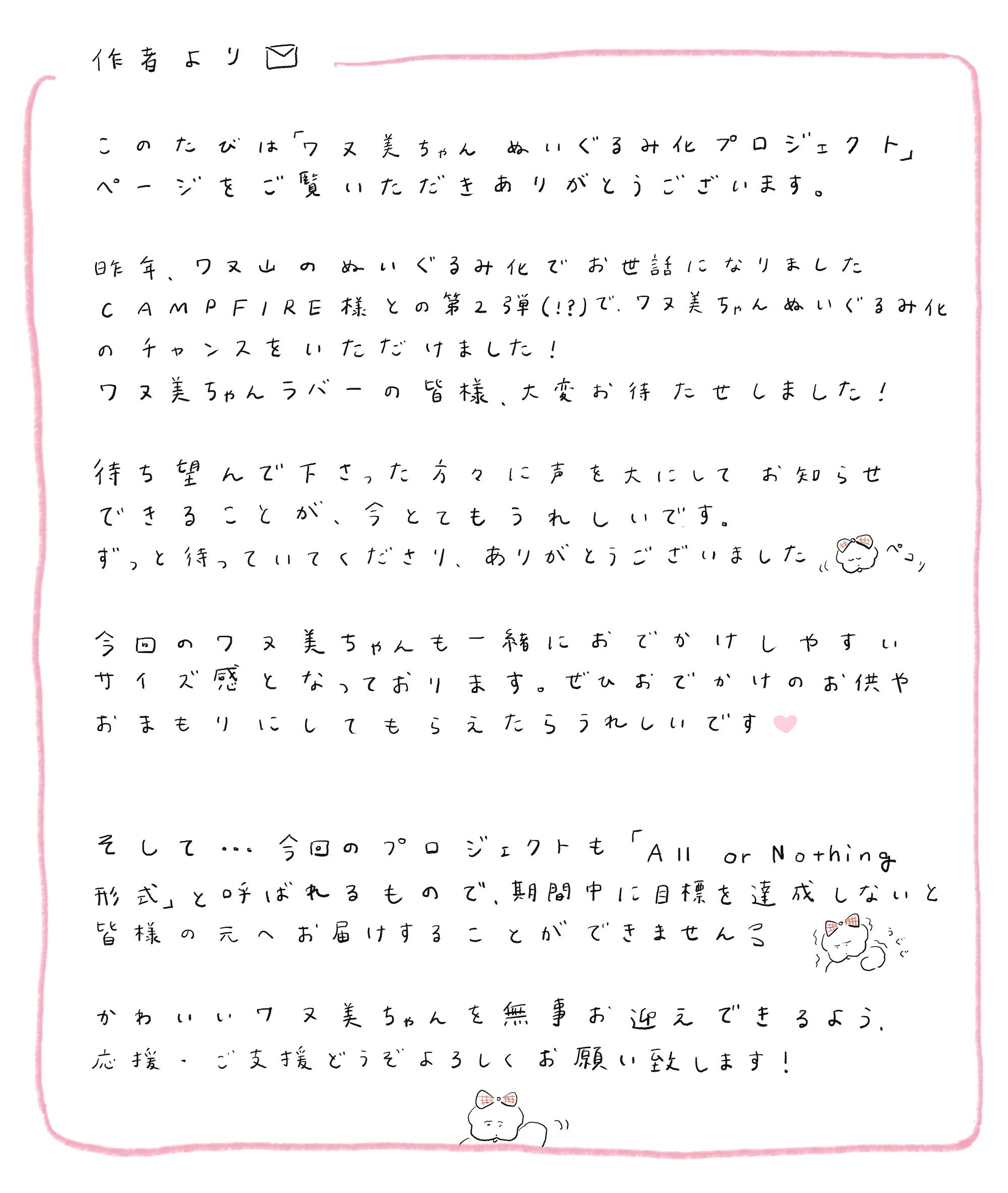 ワヌ山ぬいぐるみプロジェクトから約1年…