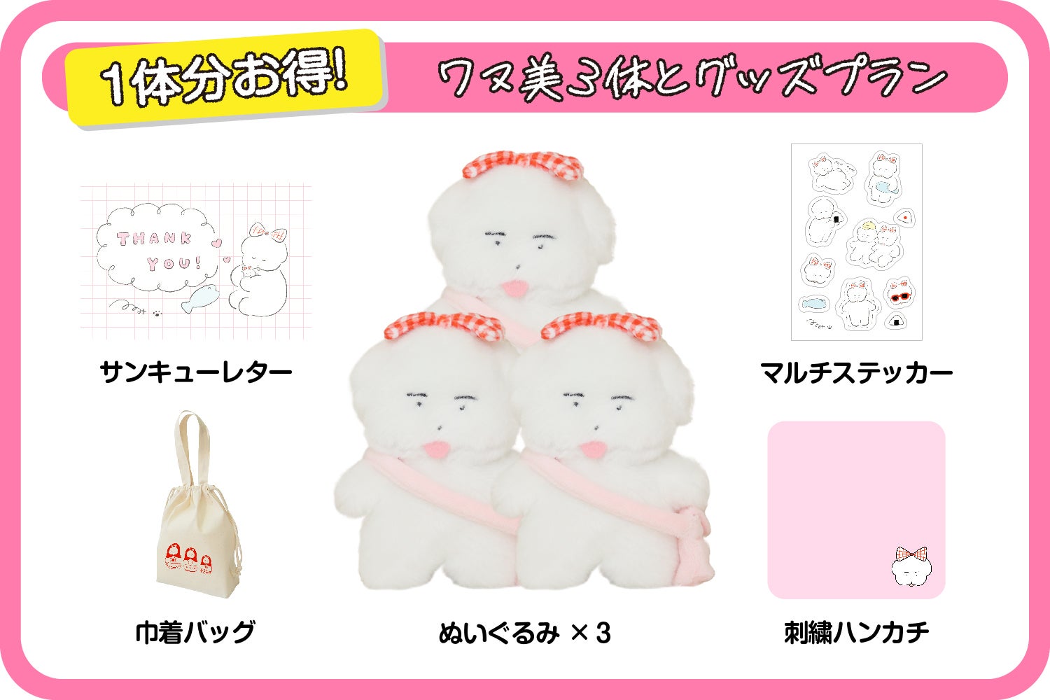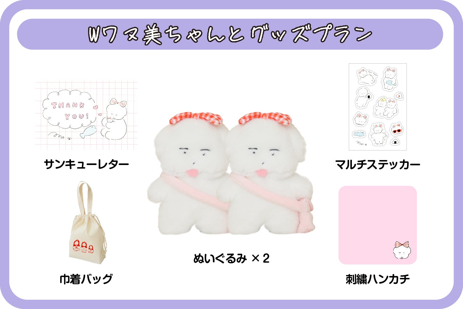 ワヌ美ちゃん2体とグッズが揃うプランです!