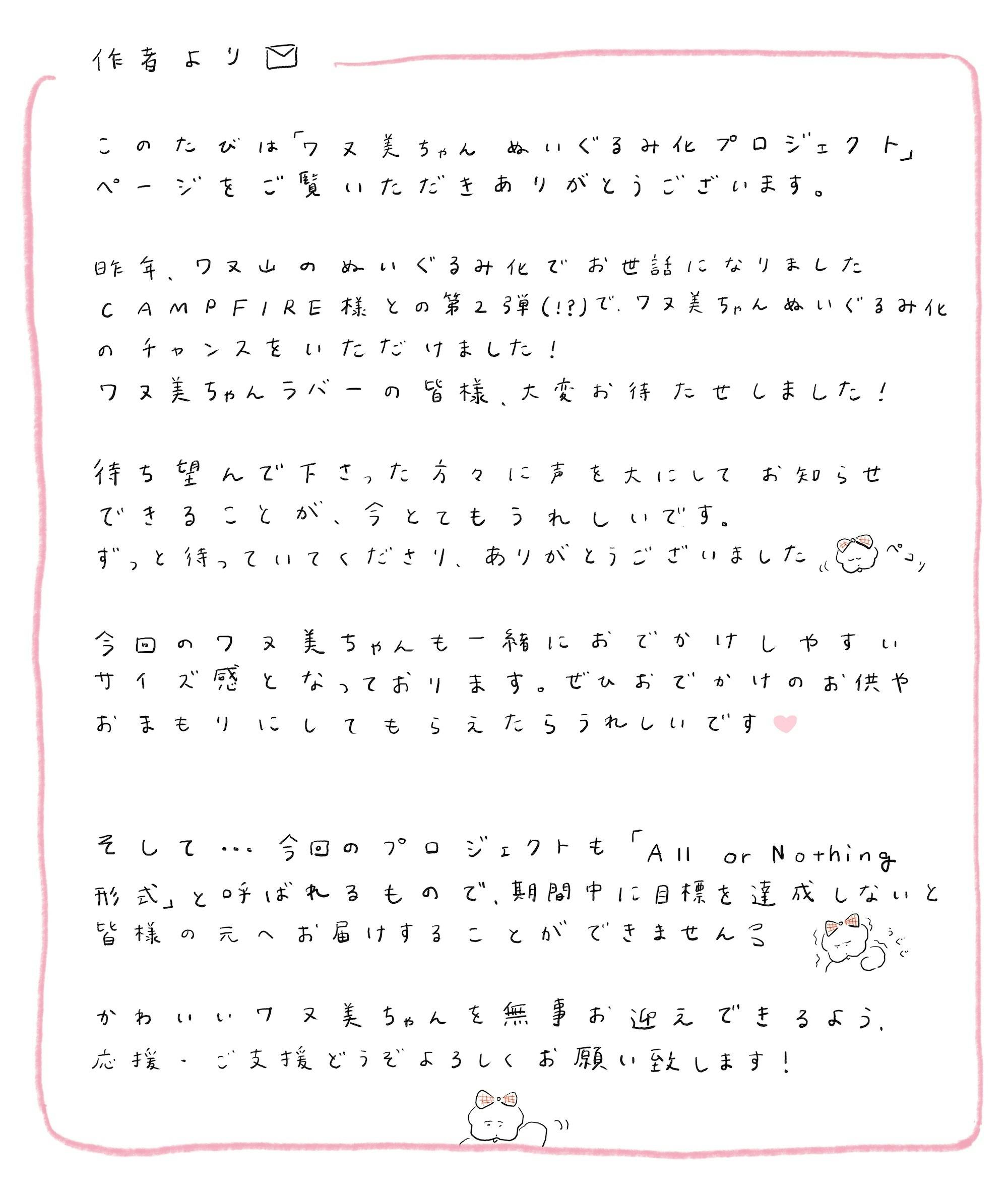 今度はワヌ山フレンズのワヌ美ちゃんがぬいぐるみになって登場です。