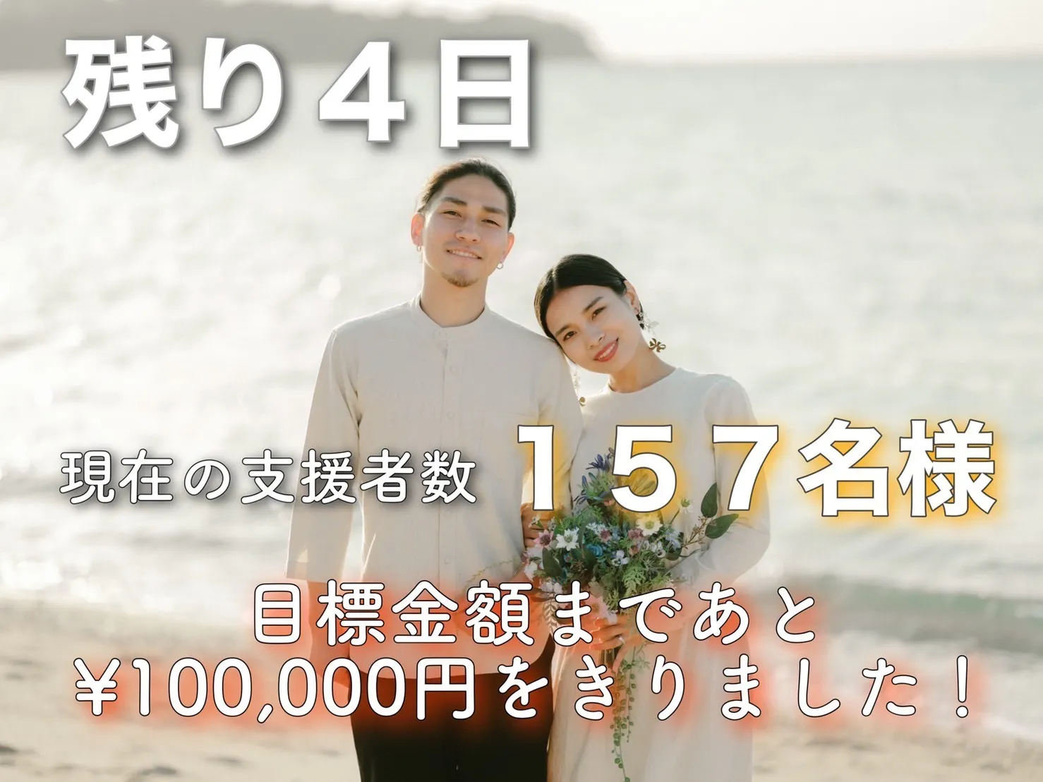 157名という沢山の方々に支えられ、目標金額まで残り10万円切りました!!