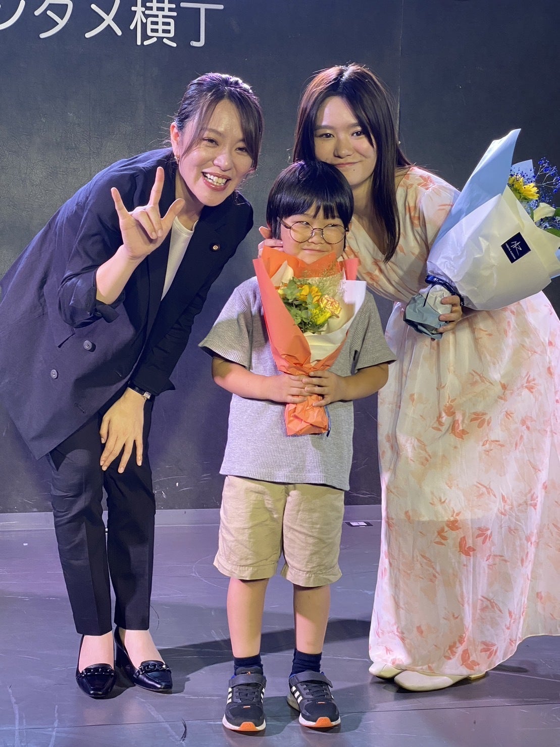 主演の中野さん、中野さんの息子役・人夢くんと写真撮影。