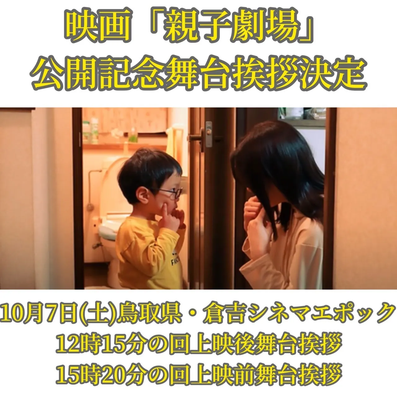 映画「親子劇場」は倉吉シネマエポックにて10月6日より先行上映です。