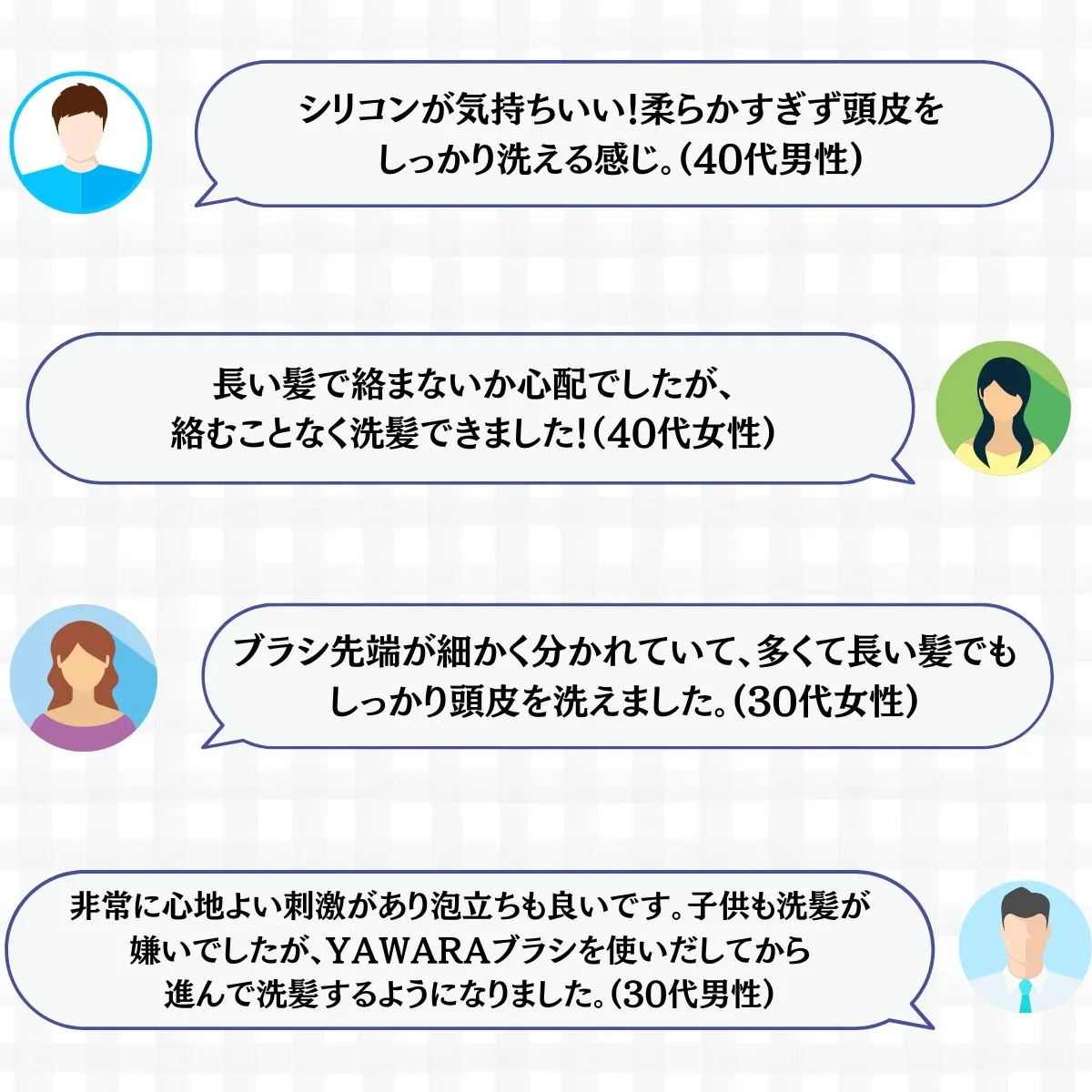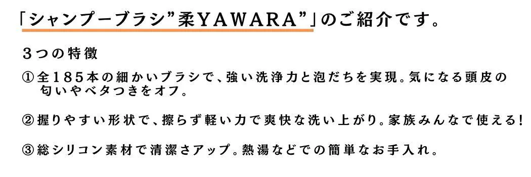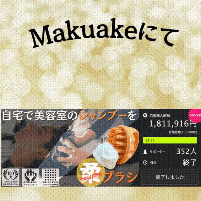 2023/05/20 17:51公開終了まで残すところ3日となりました!じわじわと暑くなってきたこの頃ですが、頭皮のベタつきや痒みは気になりませんか?柔YAWARAブラシなら、細かい185本ものシリコンブラシが頭皮にフィットしてさっぱりと洗い上げます。細かいブラシのため泡立つもよく、まるで美容室のような爽快感が得られます。ぜひ「超早割」が残っているうちにお求めください。先日から私はミント系のシャンプーを使用し、ますますお風呂での爽快感がアップしています!購入者の皆様もぜひ、お試しくださいね!プロジェクト終了後、5月中にお届けできる予定です。 もっと見るおかげさまで目標金額を達成いたしました!
