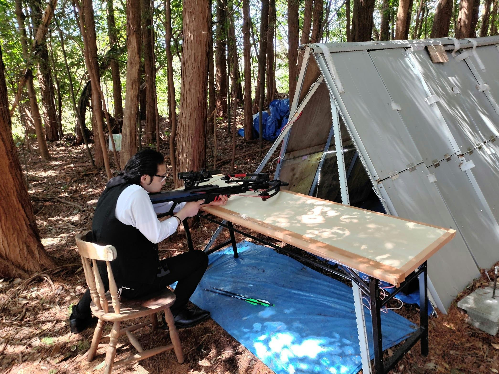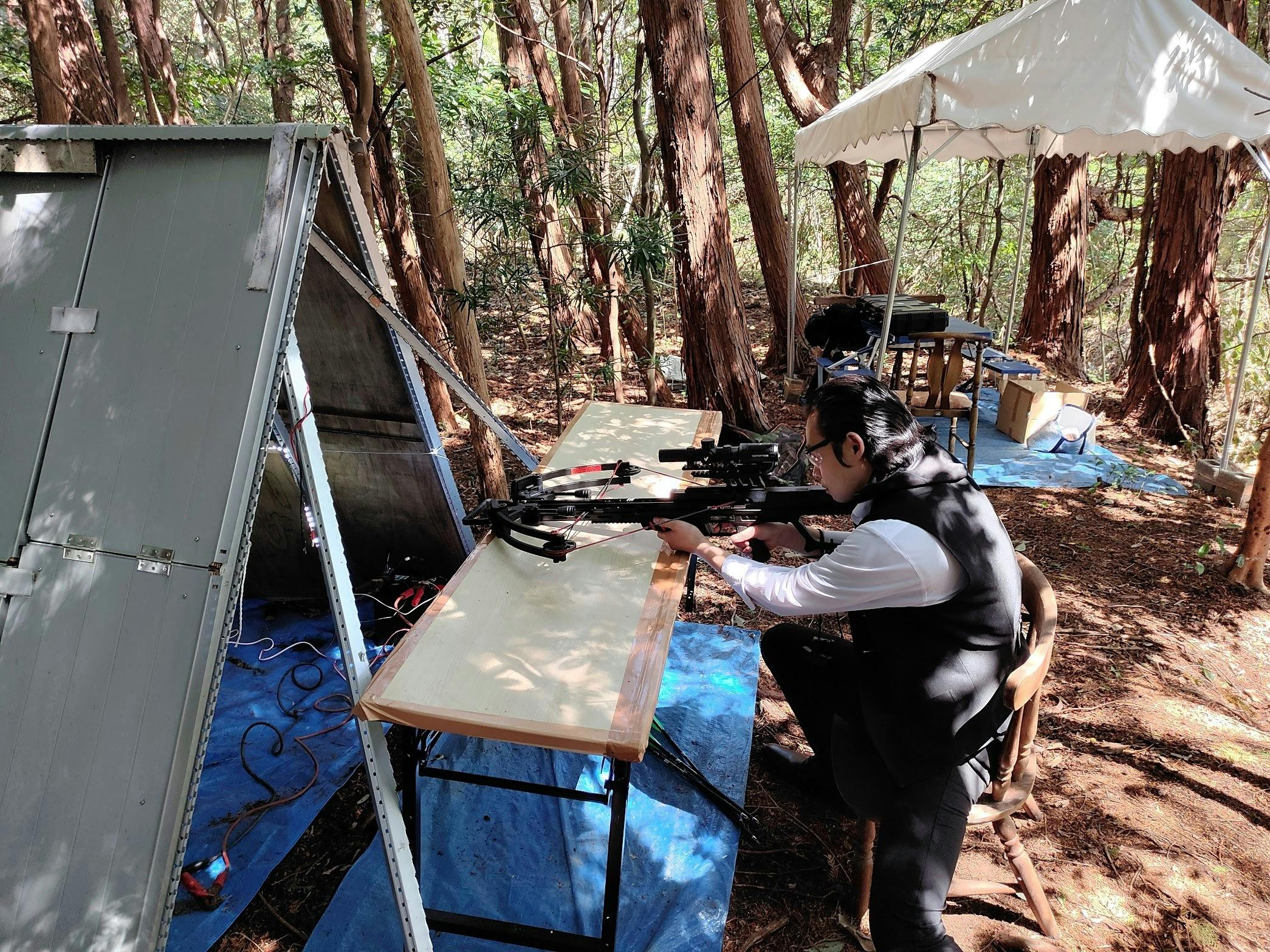 すごくダンディな方で、一発で的の中心(10点)を射抜いておられ、射撃の腕もすばらしく、