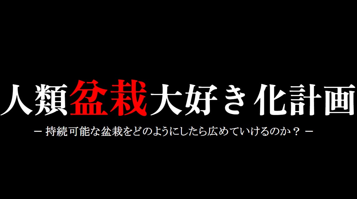そして最終的には、全世界の人が盆栽を大好きになってもらえるよう、『人類盆栽大好き化計画』を遂行して頑張っていくので、是非、ご支援の程よろしくお願いいたします。