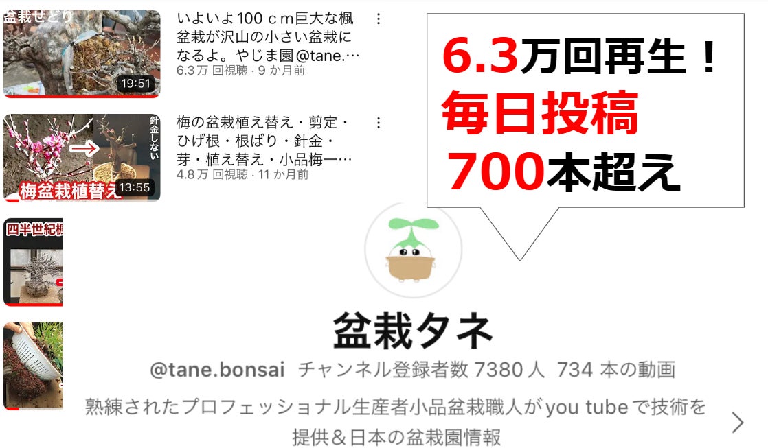 私は両親と協力して、『盆栽タネ』という名前でYouTubeをはじめました。