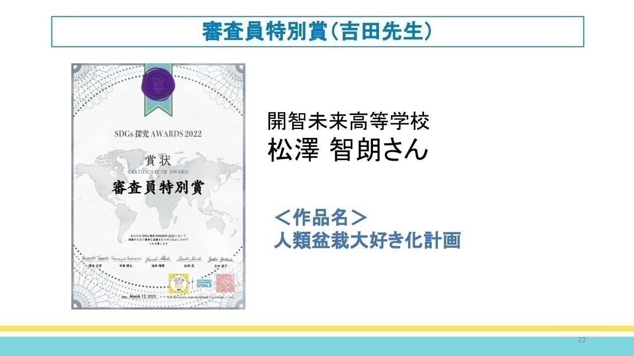 この活動は『SDGs探究アワード2022』にて審査員特別賞を頂くことができました。