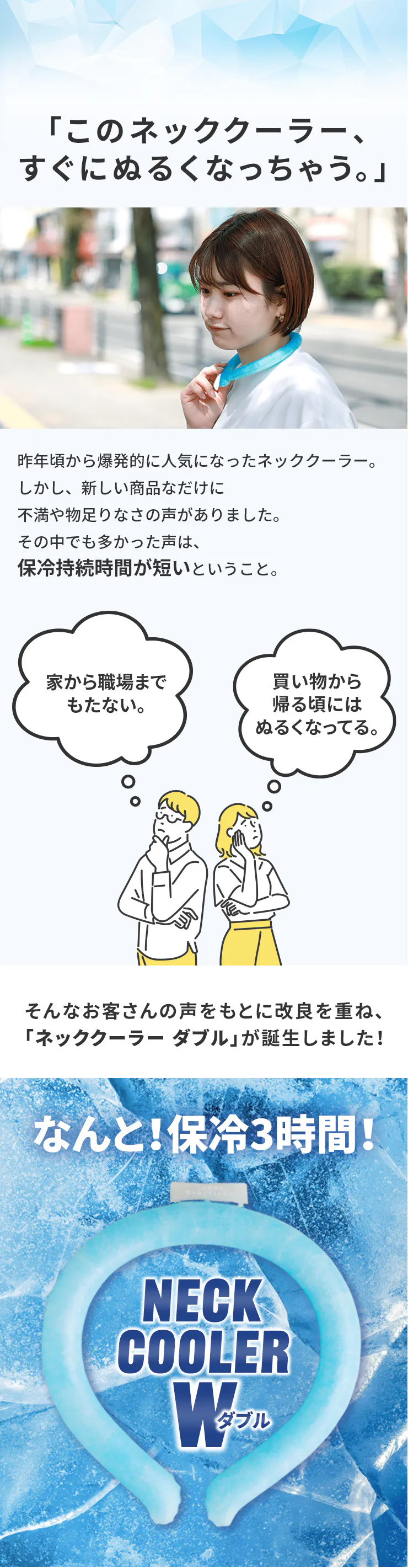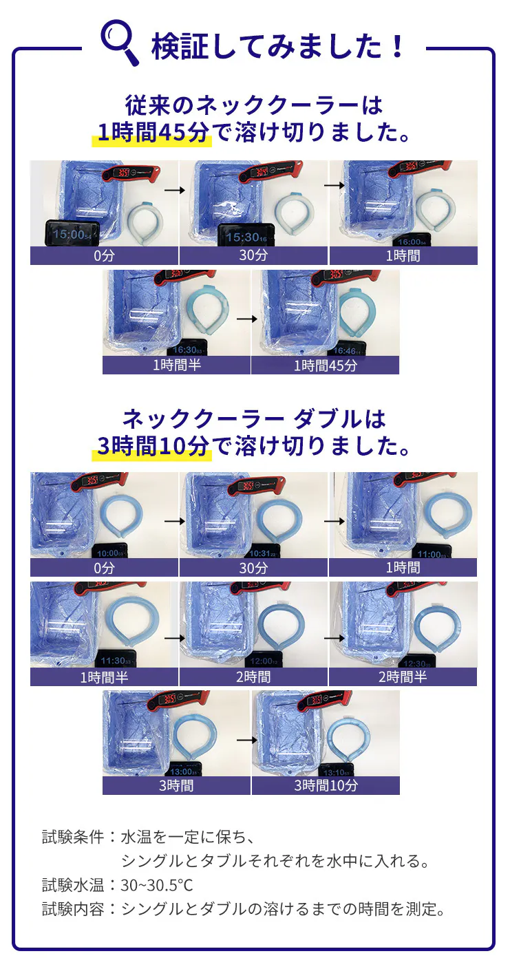 2層構造によるネッククーラー ダブルは約3時間10分のなんと約1.8倍!