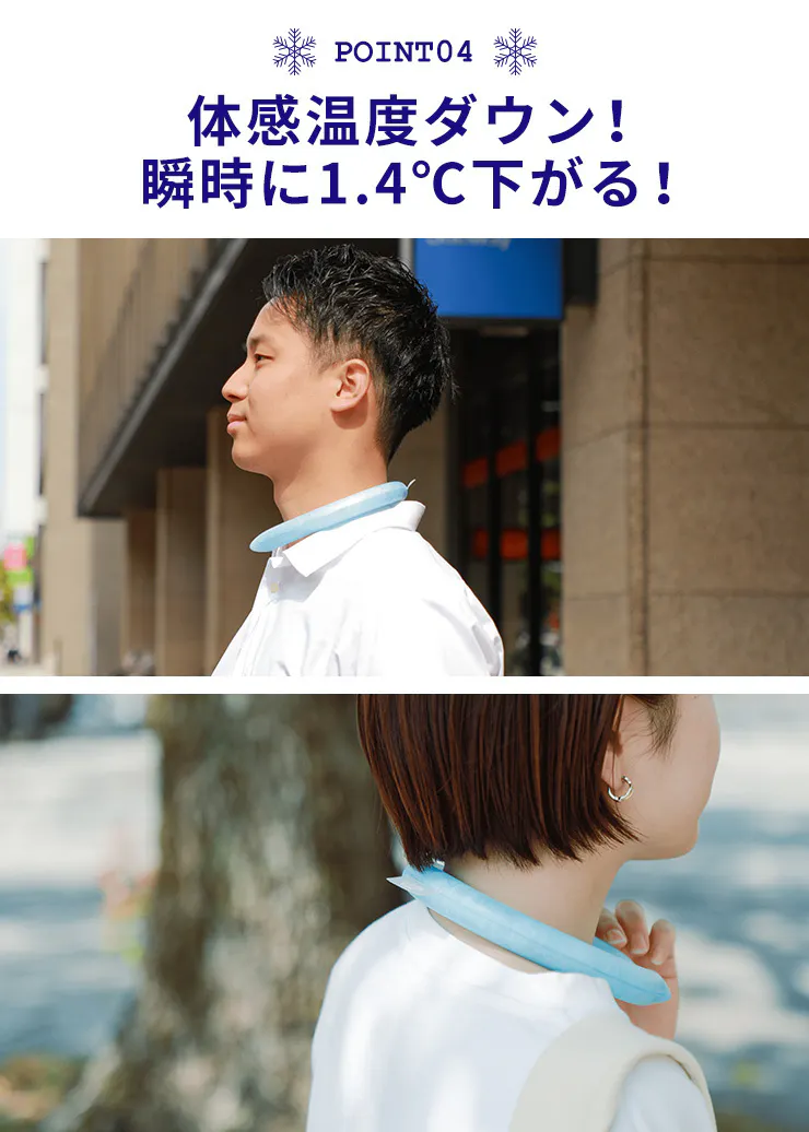 肌に直接触れても心地よい冷たさでしっかり首元を冷やします。