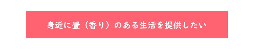 私がまず感じていることは、私も含め日本人は畳の事を知らないということです。見れば「畳」と分かるけど、そもそも「畳」がどんなものかを知っている日本人はあまりいないと思います。現在、畳は減少していますが、まだまだ畳には可能性があると感じています。この可能性を広げることなく畳がなくなっていくことがMOTTAINAIと思うのです。ですから、これからも畳の可能性を広げられるよう行動していきたいと思います。