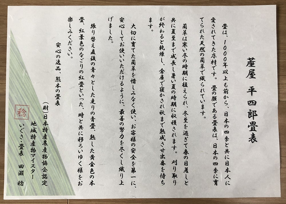 ・イグサは水に弱いため、雨天時のご利用はお気を付けください。