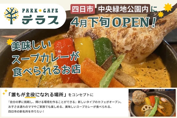 今回オープンする「Park cafe テラス」は三重県四日市市の中央緑地公園内にある飲食店舗エリアの一角にあったカフェ施設を居抜き物件として活用しています。