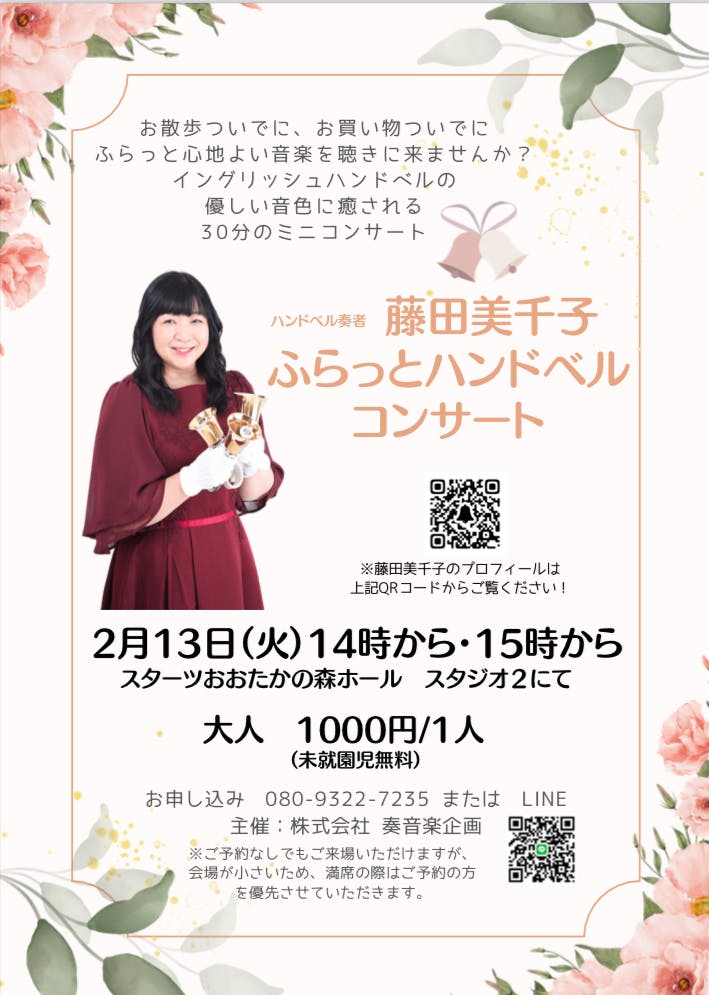 お出かけのついでに、お気軽にハンドベルの音色を楽しみにいらっしゃいませんか?
