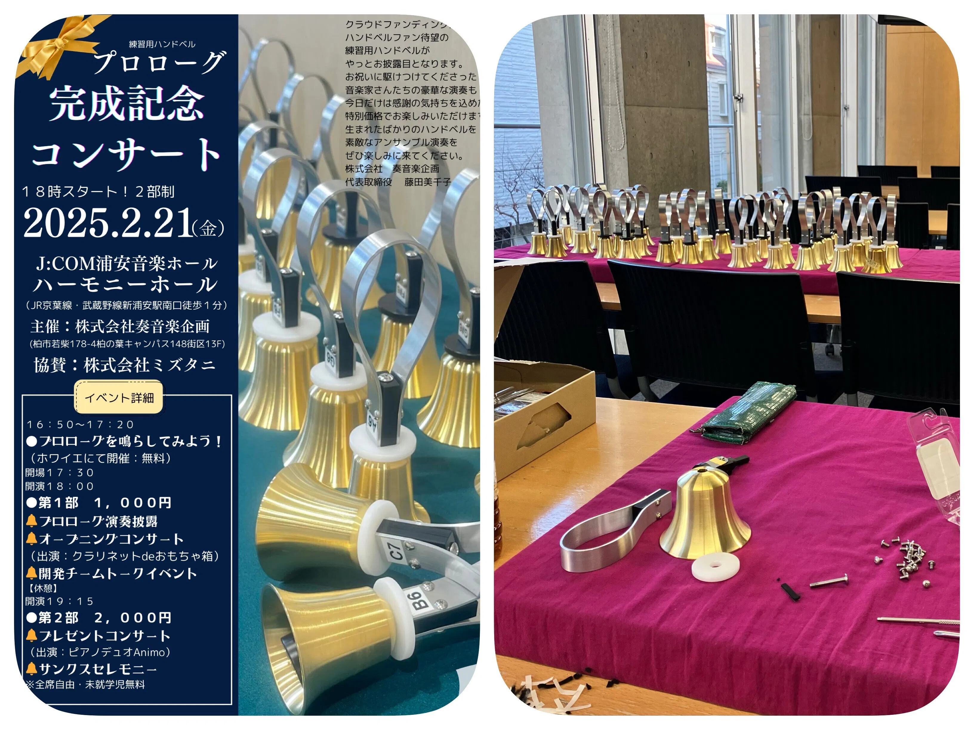 「練習用ハンドベル」納品と完成記念コンサート準備に、多忙な毎日を送っております。