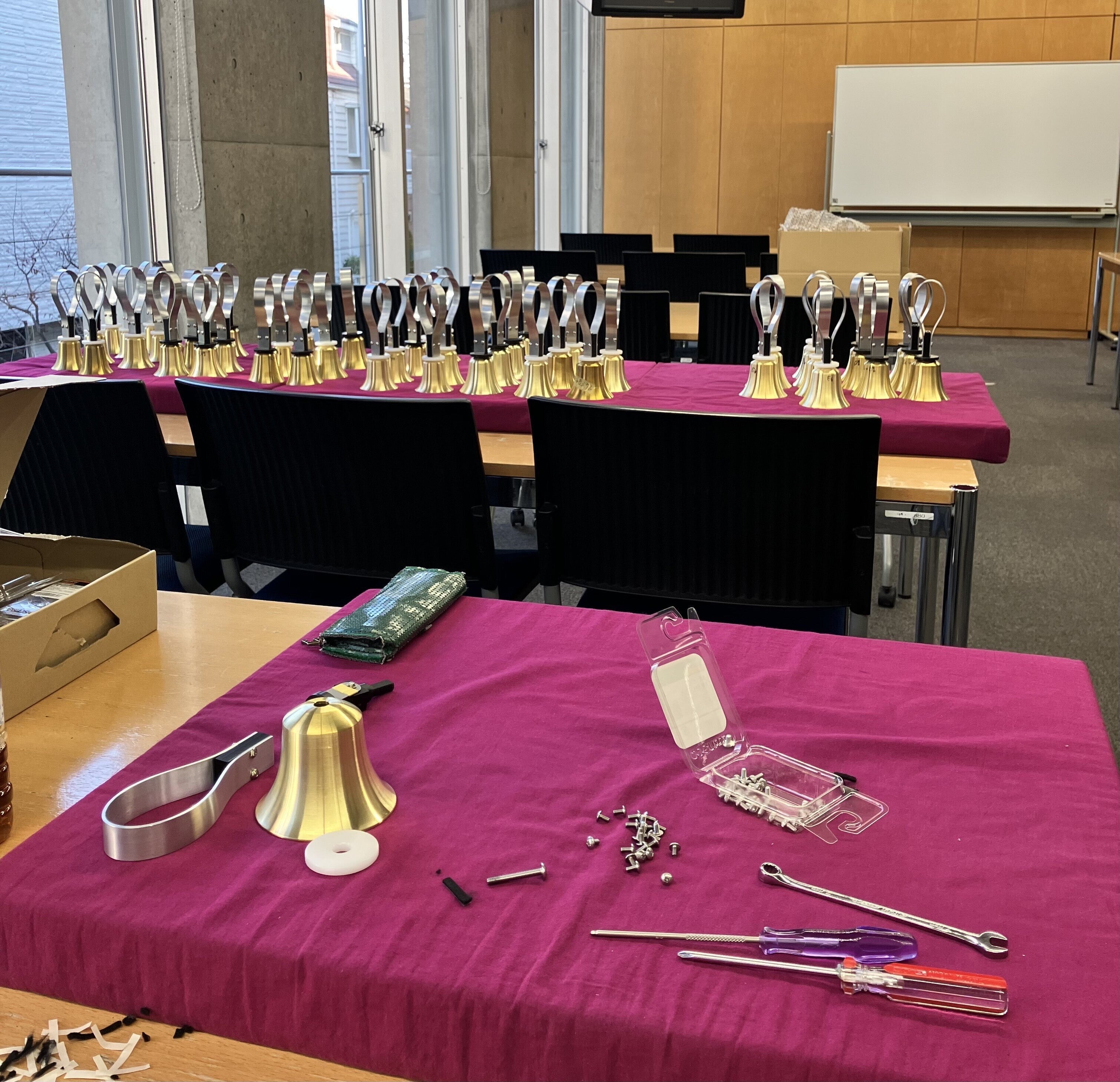 1日も早くお届けできるように、日々、このような環境で頑張っております。本日、第1便がやっと発送となりました。本当に、本当にお待たせいたしました。これから、ユーザー様の楽しいハンドベルライフが始まることを心から祈っております!プロローグyoutubeチャンネルを開設しました!(音色が聞けます)