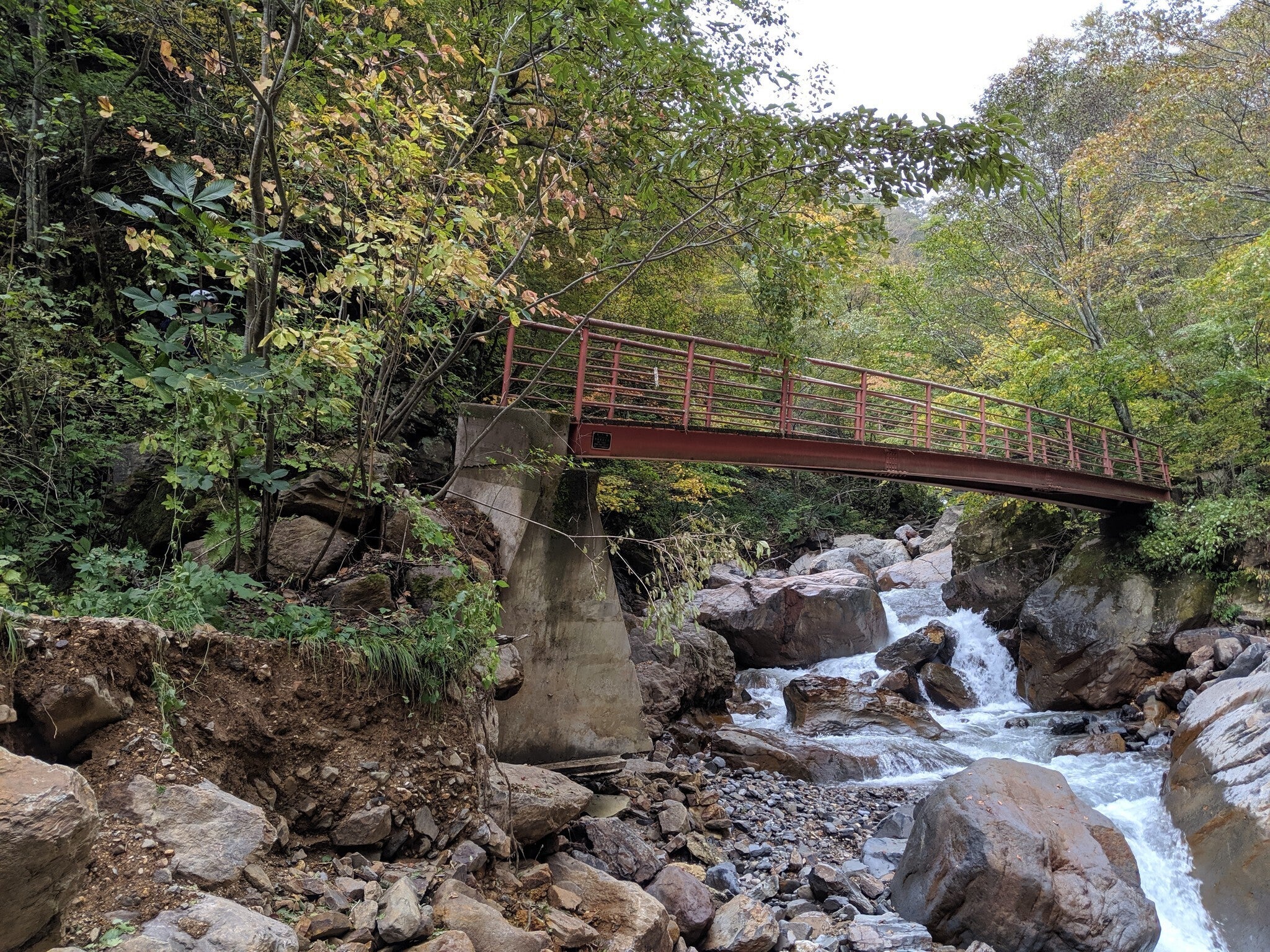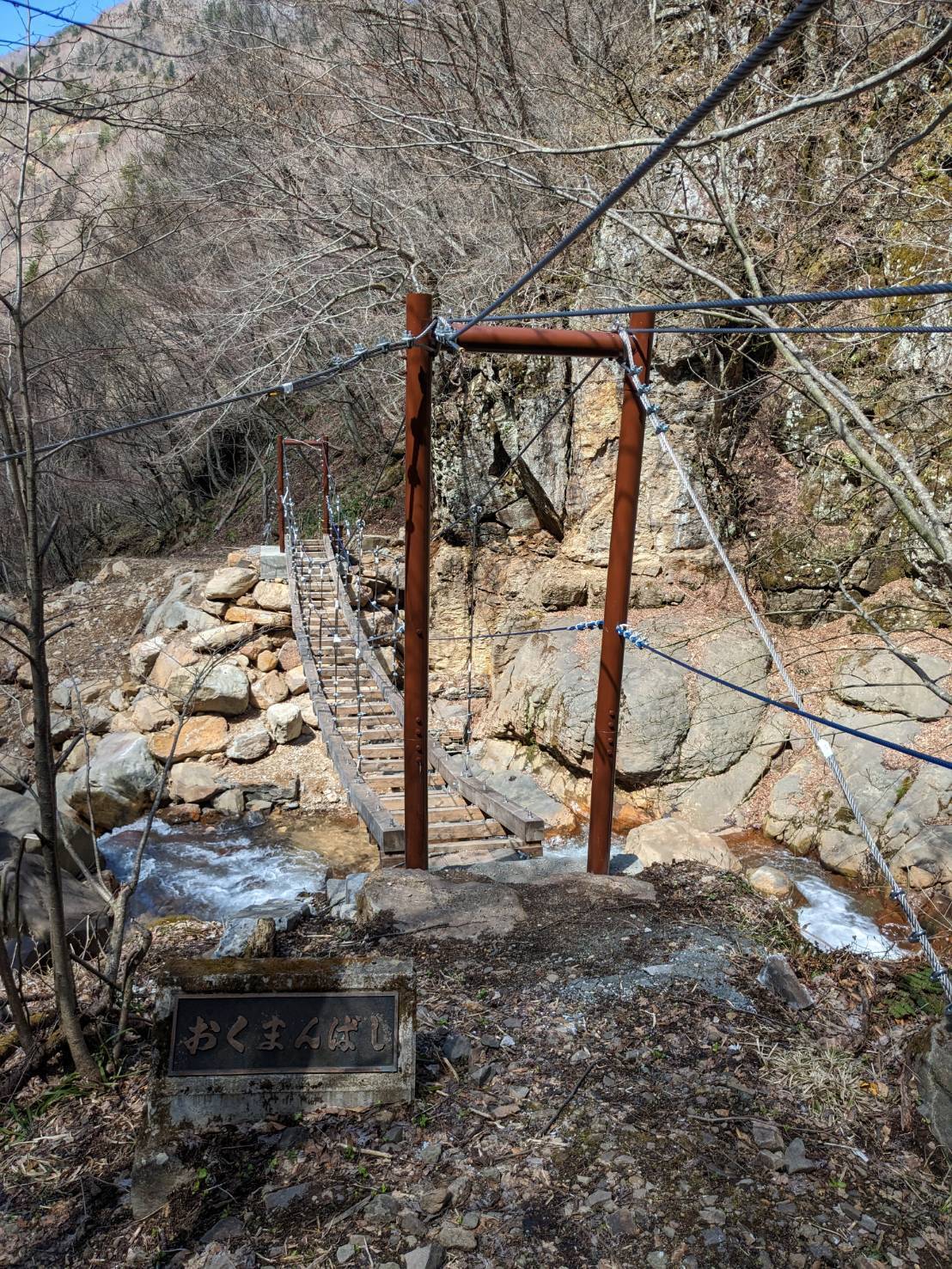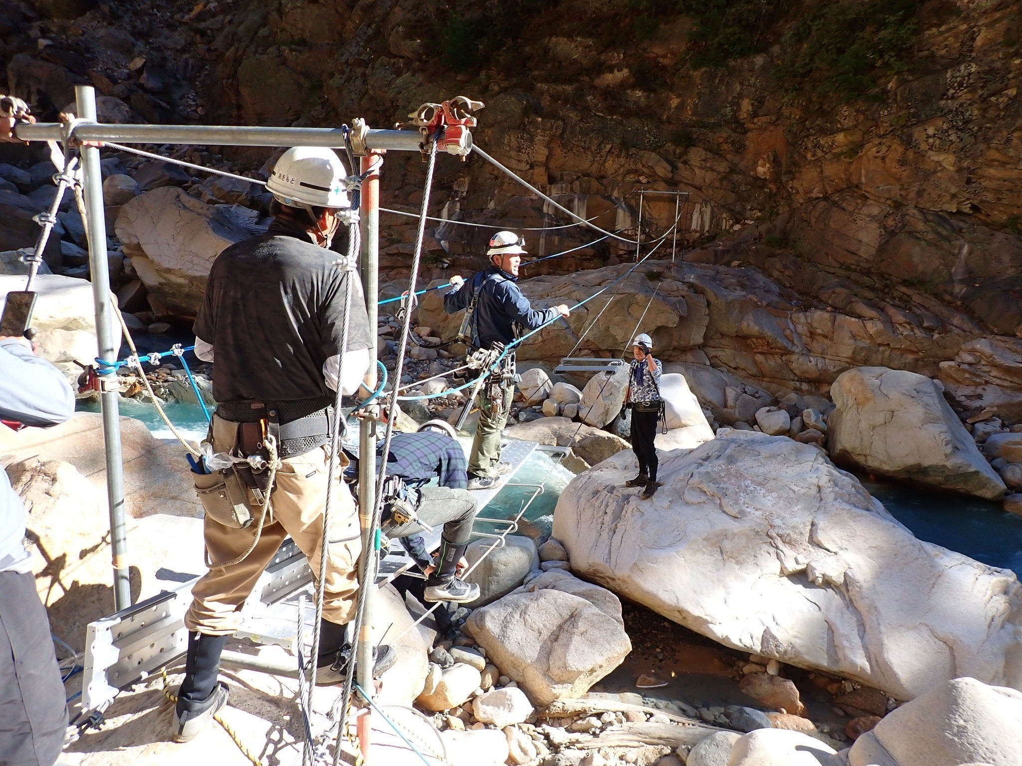 そこで立ち上がっていただいたのが地元企業の河東工業さんです。河東工業さんは北アルプスのラストフロンティアと呼ばれている伊藤新道の吊橋の建造にも関わっており、その技術を応用し、低コスト・短期間で橋を復旧させました。