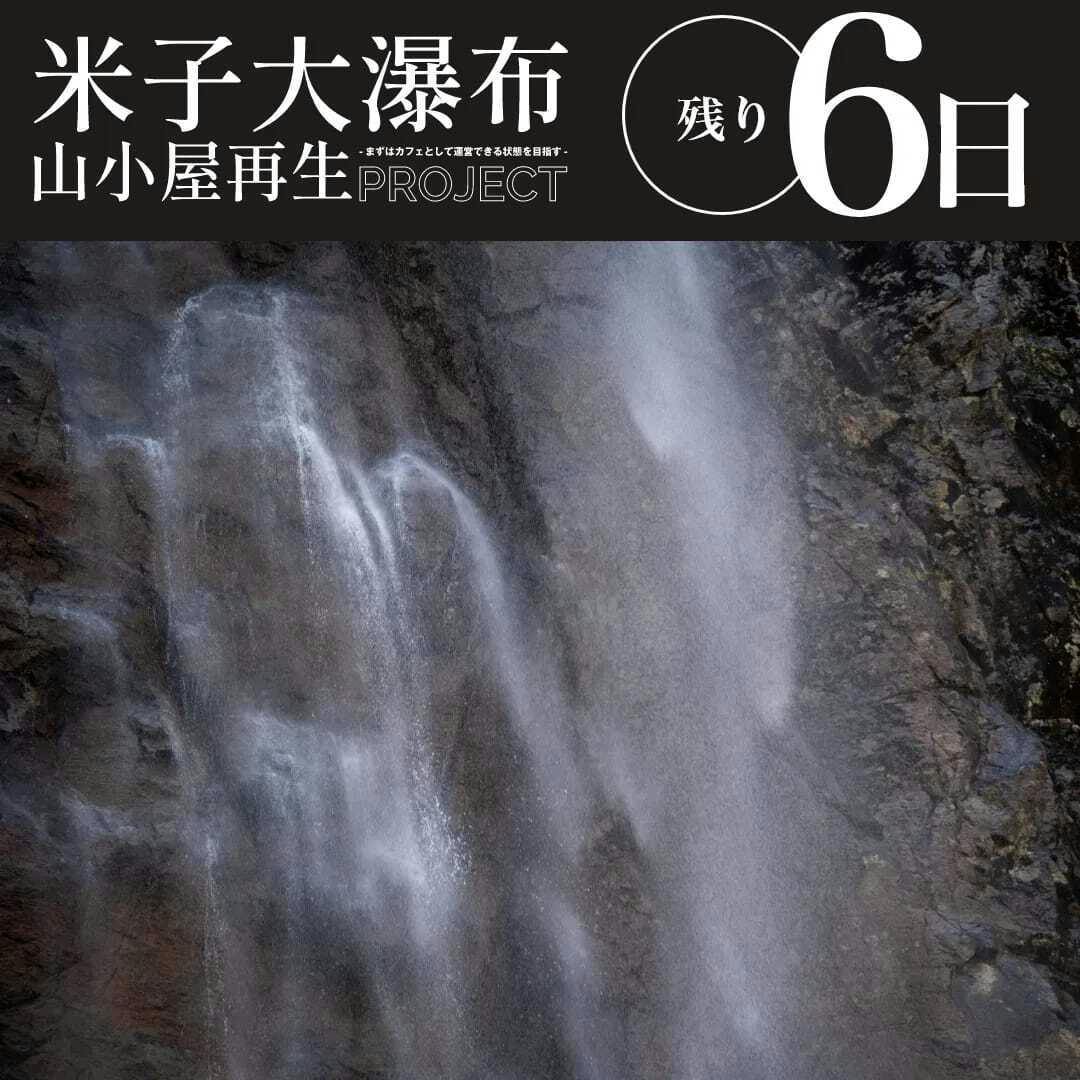 米子大瀑布の山小屋復活プロジェクト、残り6日となりました!いよいよ400万円越えました!ラストスパートにむけてぜひご支援と拡散をお願いいたします!