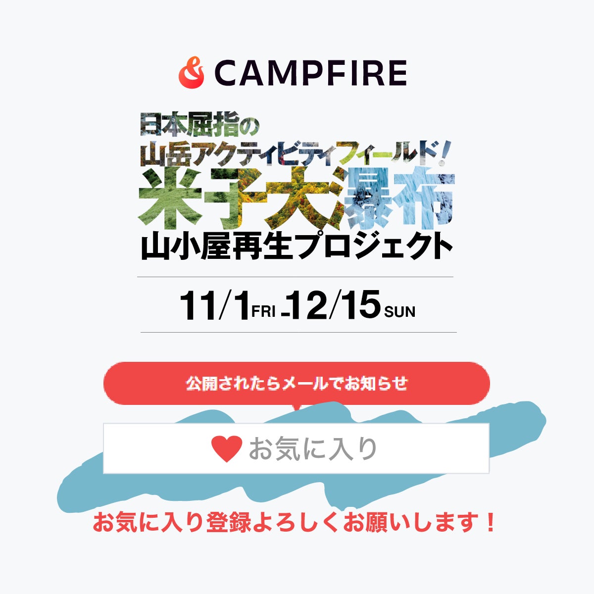 より多くの方に米子大瀑布の魅力を体験していただくため、次の目標として宿泊可能な山小屋への再生を目指します。11月1日からクラウドファンディング第二弾が始まりますので、ぜひシェアやご支援を通じて、この素晴らしい遺産を未来に残すお力添えをお願い申し上げます!