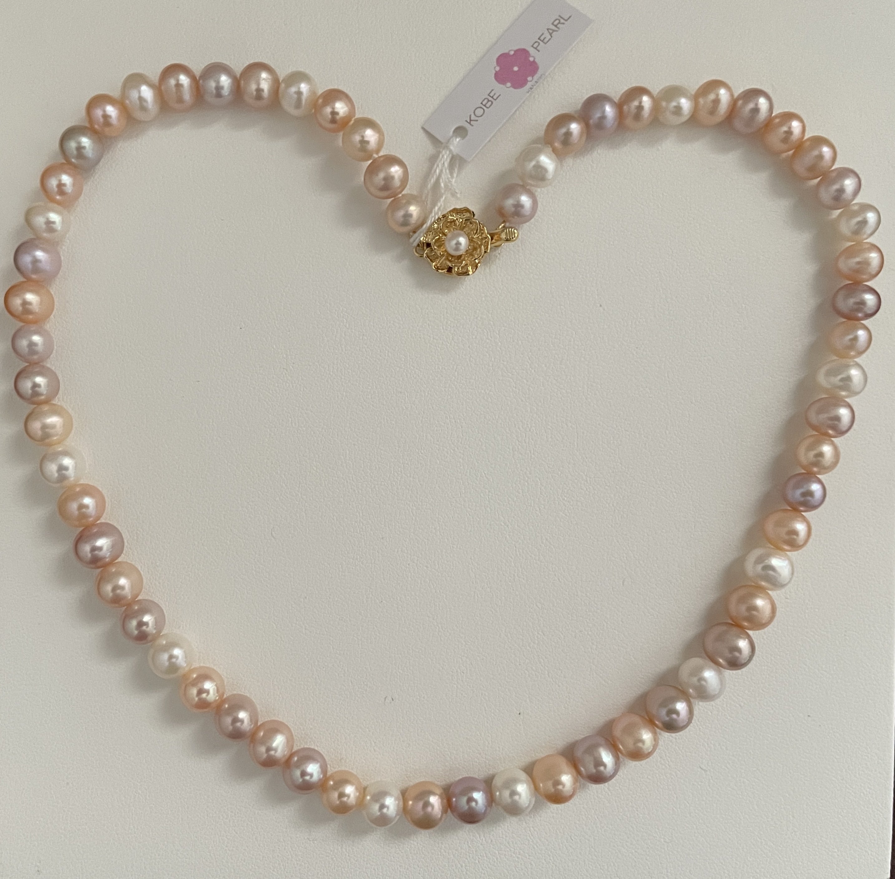 KOBE HANAIRO PEARL (神戸製品)と花束中のセット KOBE HANAIRO PEARL (神戸花色パール)は神戸で製作された商品として商標登録されており当社のみ使用販売出来る商品です。クラスプは可愛い薔薇で天珠にも本物のパールを使用しています。ホワイトとマルチ(ナチュラル)カラーの2色からお選び頂けます。