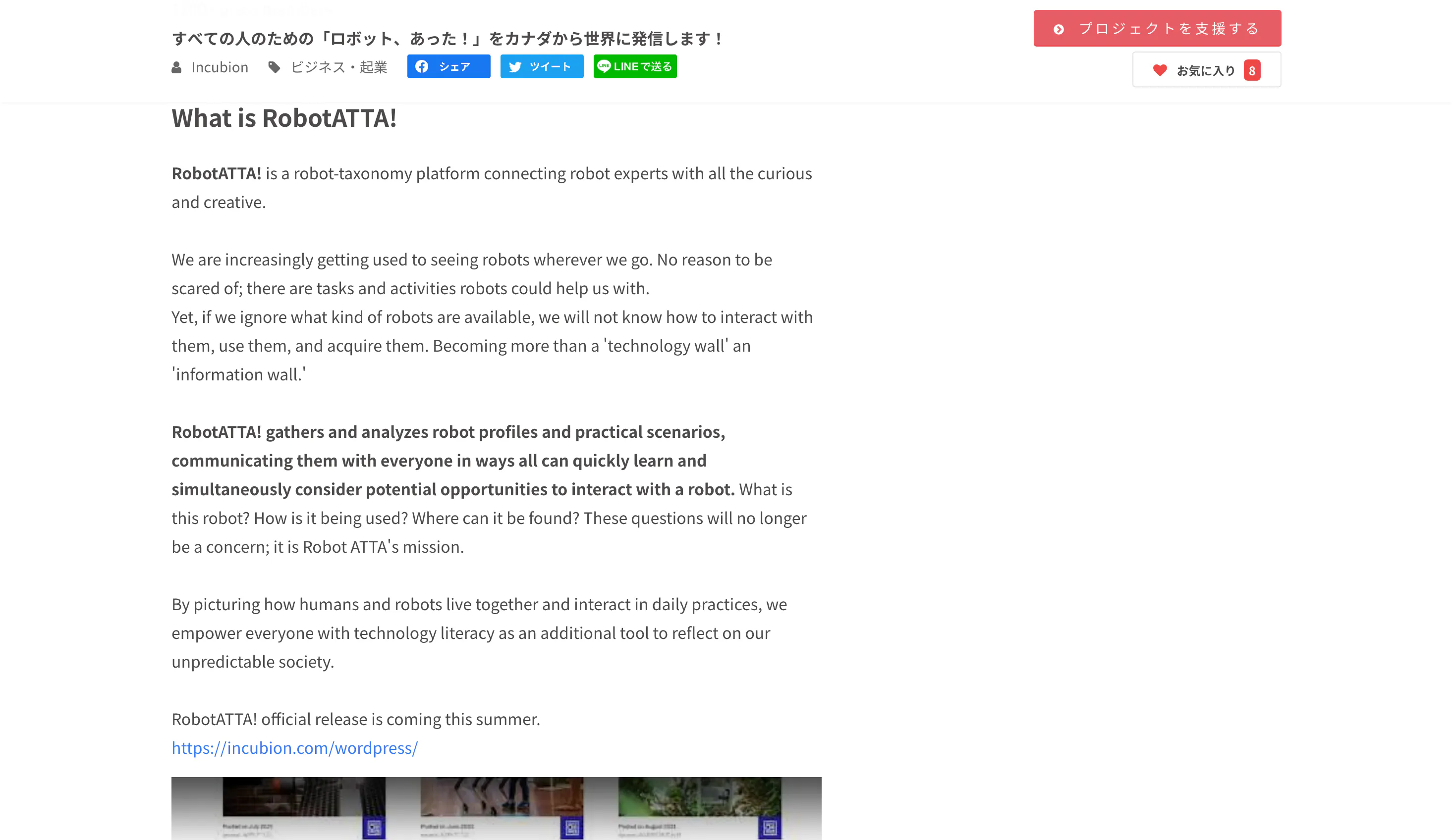 Hi, I am Shoko, the founder and CEO of Incubion Inc, and the project owner of this campaign. We've updated the campaign page so that it is accessible for non-Japanese speakers as well. Please help us spread the word!