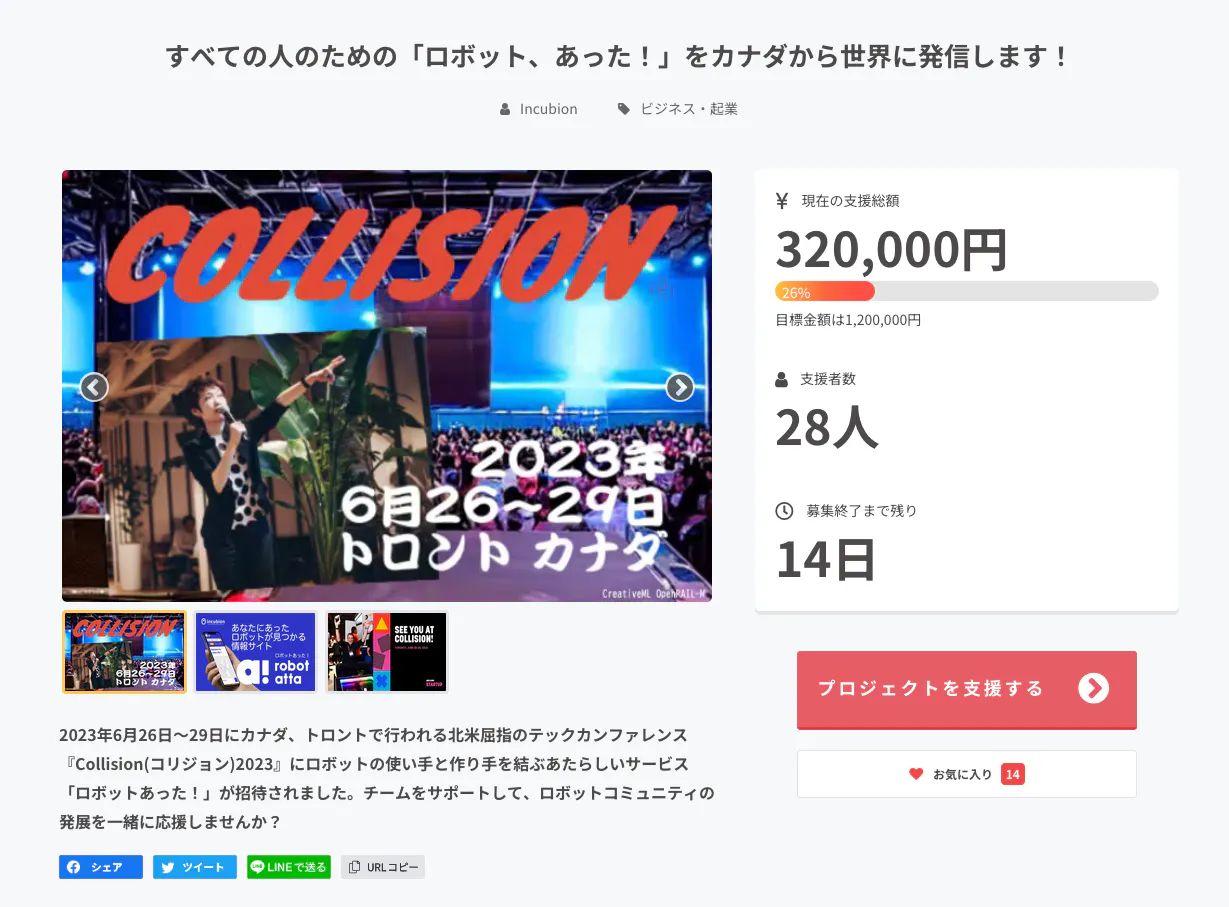 どうか引き続き当プロジェクトのシェアにご協力をお願いいたします。モノ系のような華やかなプロジェクトではないため、当プロジェクトにご賛同くださった方からのご紹介や「お気に入り登録」の件数で注目度が大きく変わります。なにとぞご支援いただければ幸いです。