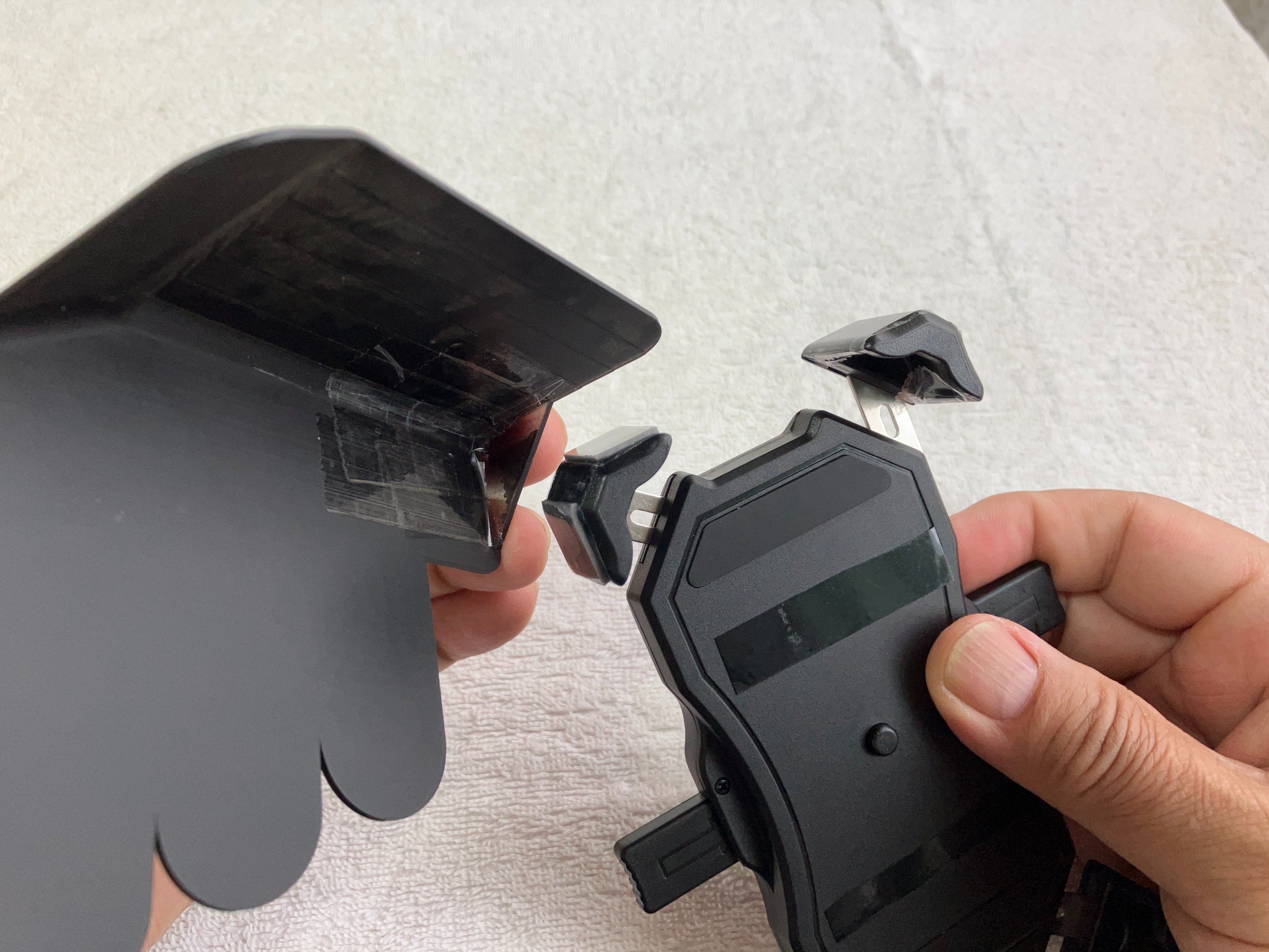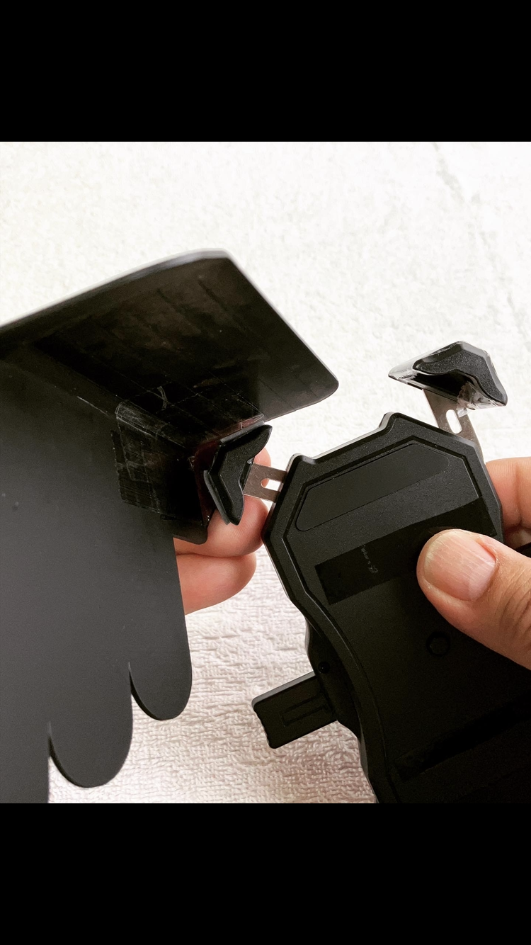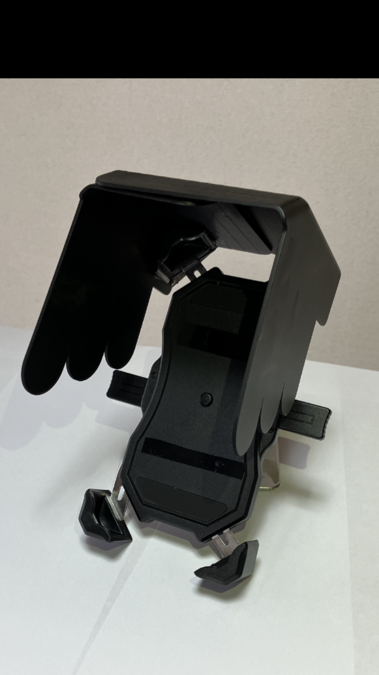 ※現在、数社の企業から既にスマホホルダー用のサンシェードは販売されておりますが、非常に小さい商品(これで遮光性があるのか!?)や、異常に大きいサイズで、装着すると計器類も確認しづらい・大き過ぎて周りの視線が気になる・重いので走行中の振動でサンシェード部分が頻繁に下がってきてしまうのが非常にストレス.. というような利用者(購入者)様からの指摘が多い点を考慮し、【別の商品として】ではなく【一体化させればいくつかの問題点を解消できるのでは】との視点から考え、私は【コンパクト】をコンセプトにこの製品を考案・作成しようと考えました。