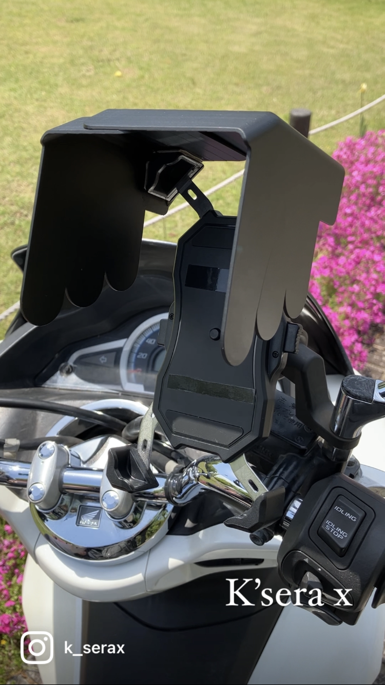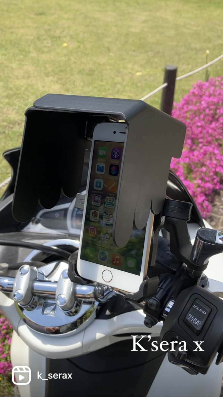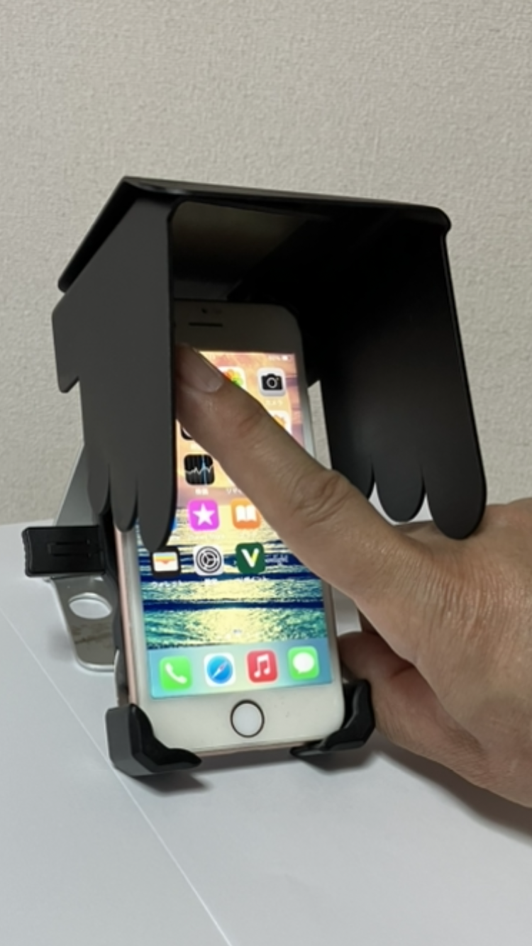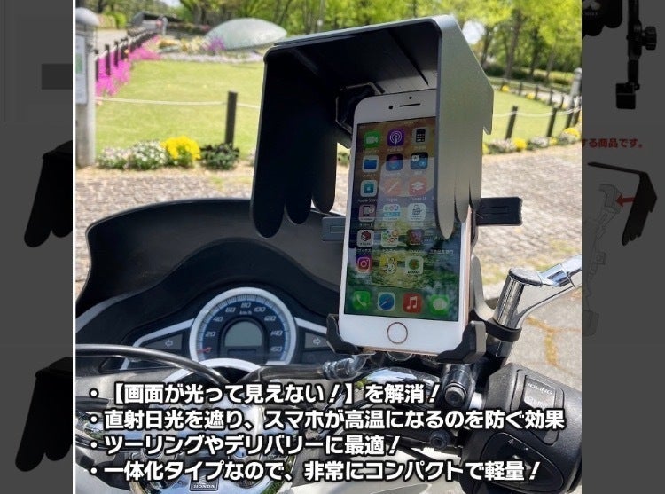 今回の商品の考案・ご提案(支援依頼)により、バイクや自転車に乗ってスマートホンホルダーをご使用されておられる皆様に、【スマホの画面に直射日光が当たって光って見えない!】等での煩わしさの解消や、危険な場面からの回避を目的として考案いたしました。