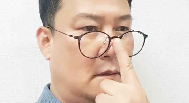 るとメガネがずれ落ちることに不快な思いをし、偶然にもメガネのモダン部を下に押
