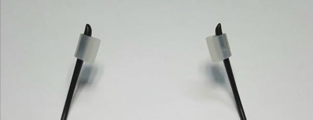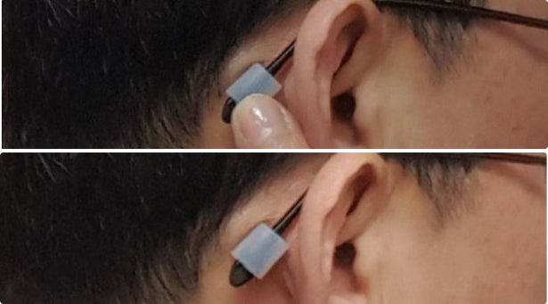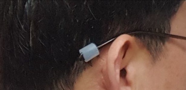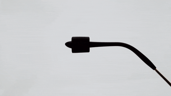メガネのモダン部にパッドをつけ装着すると、ココフリーが肌とモダンの緩衝の役割