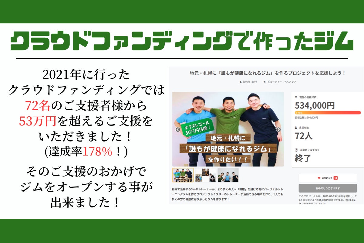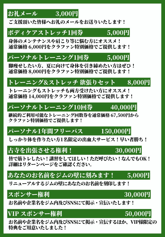 2021年にジム設立を目指して行ったクラウドファンディング