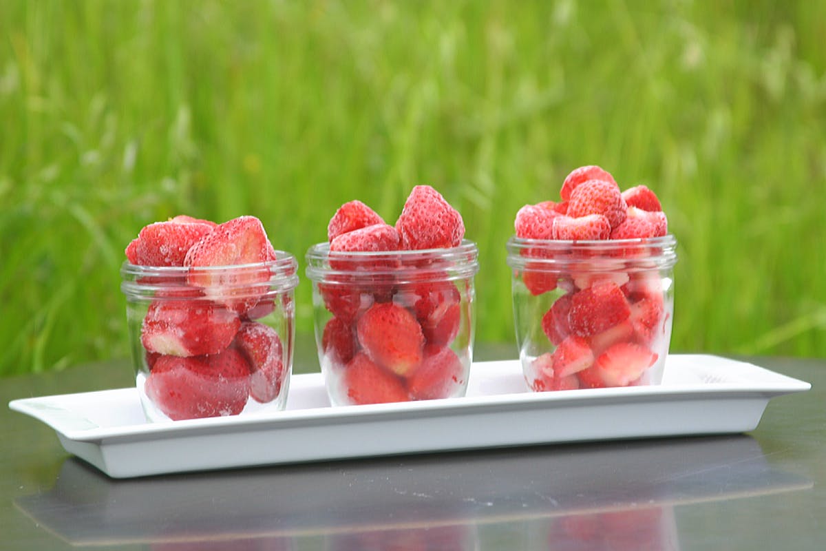 朝摘みしたあまおうをその日のうちに真空クイックフリージング!