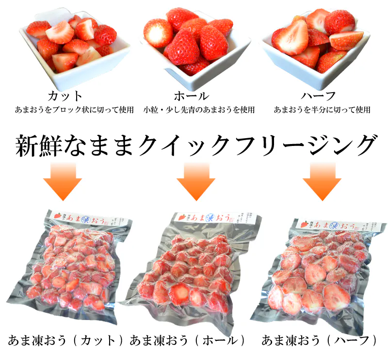 市販ではない、鮮度抜群の冷凍あまおう!味には、自身があります!