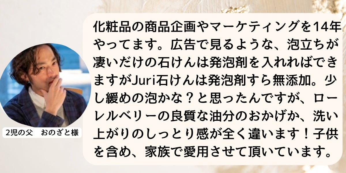 サルワが作った石けんブランドは、Juri(じゅり)。娘の名前が由来です。