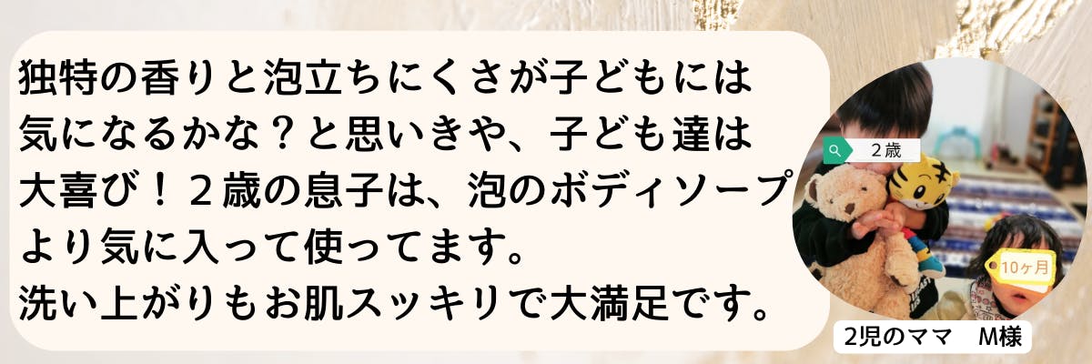 私には4歳、3歳、1歳の子どもがいますが、妻も含め全員オリーブオイル石けんを愛用しています。