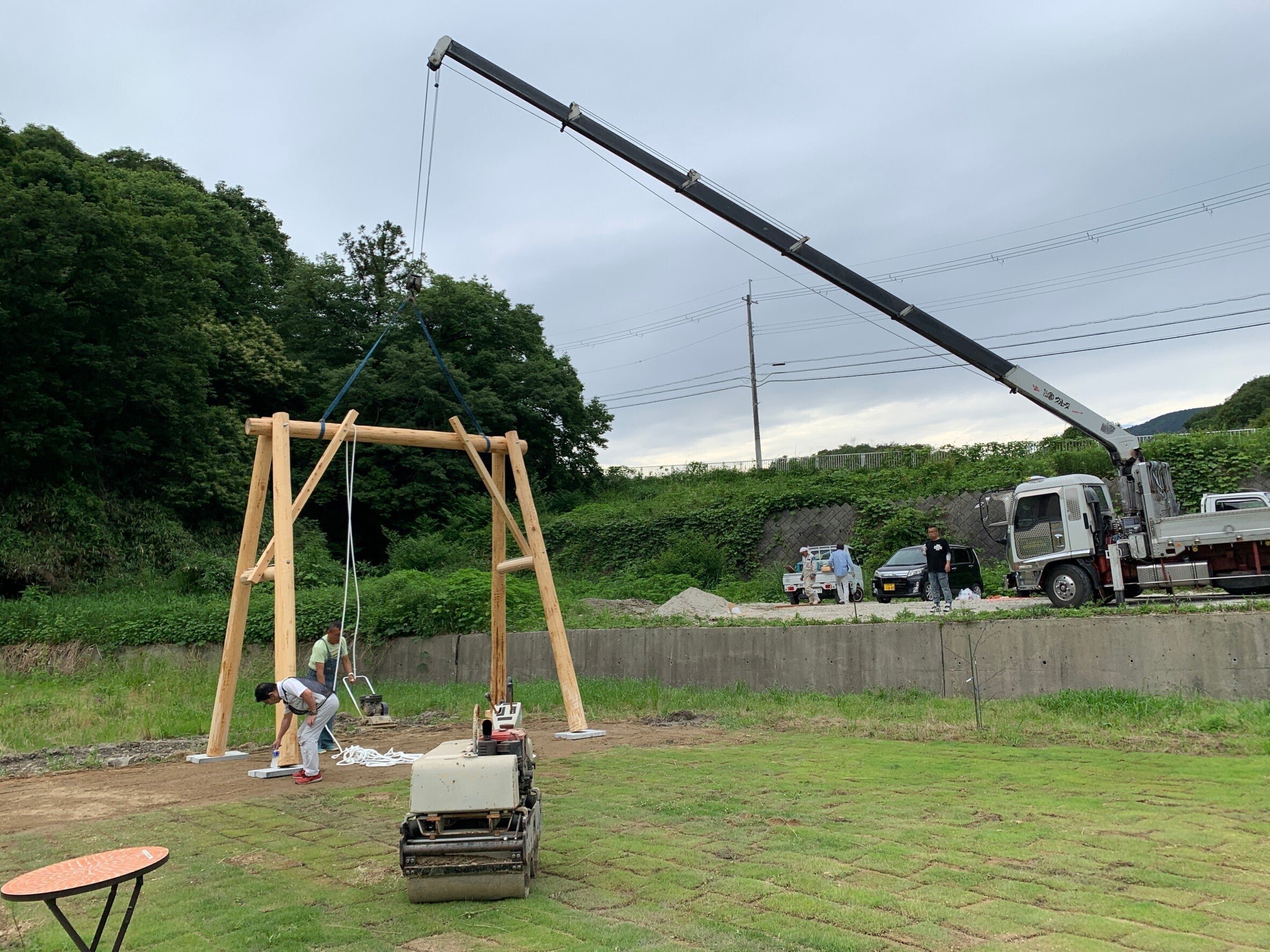 でっかいブランコの設置はクレーン( ゚Д゚)!