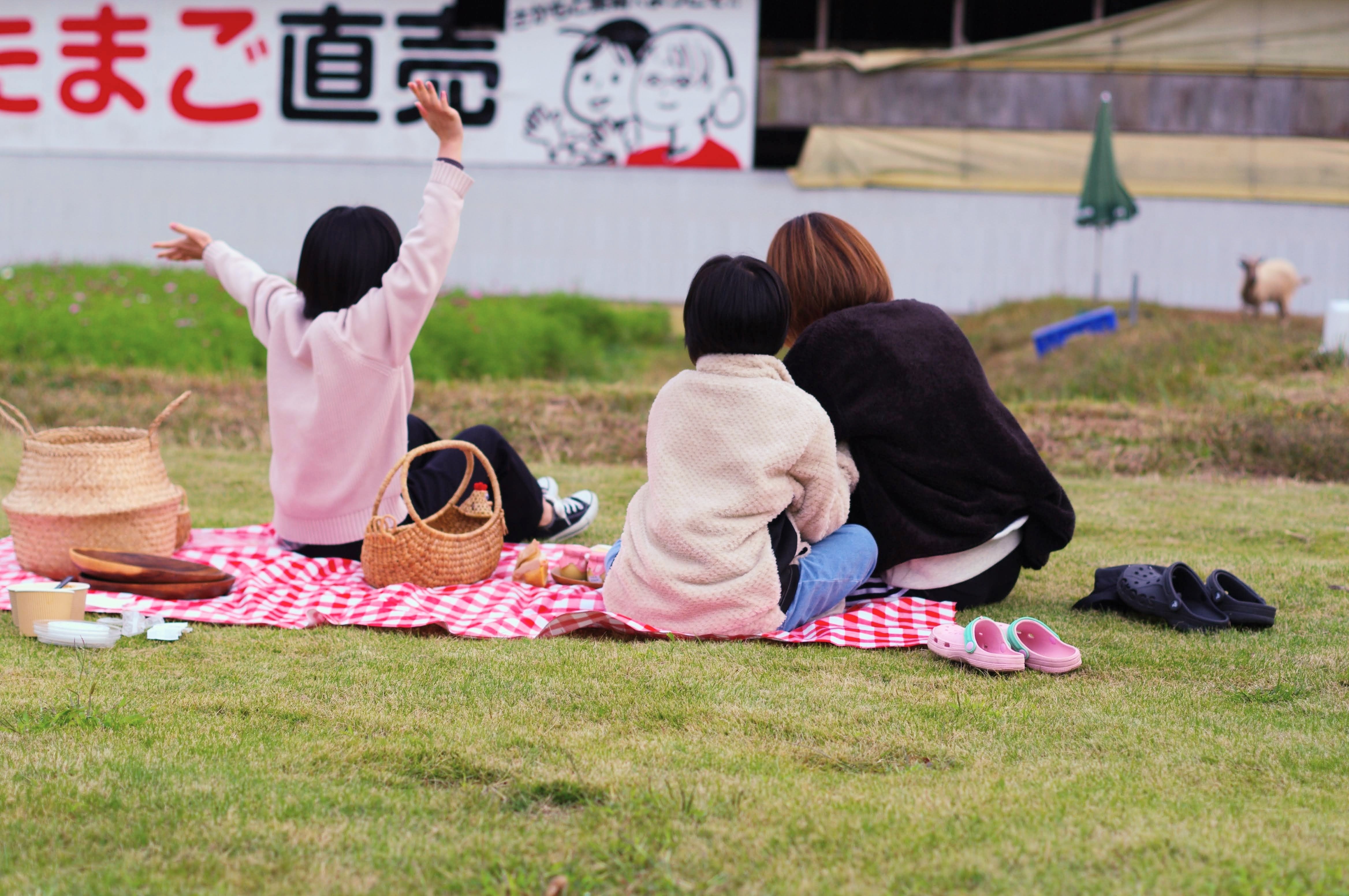 こんな風に芝生でヤギやコスモスを見ながらピクニックも!