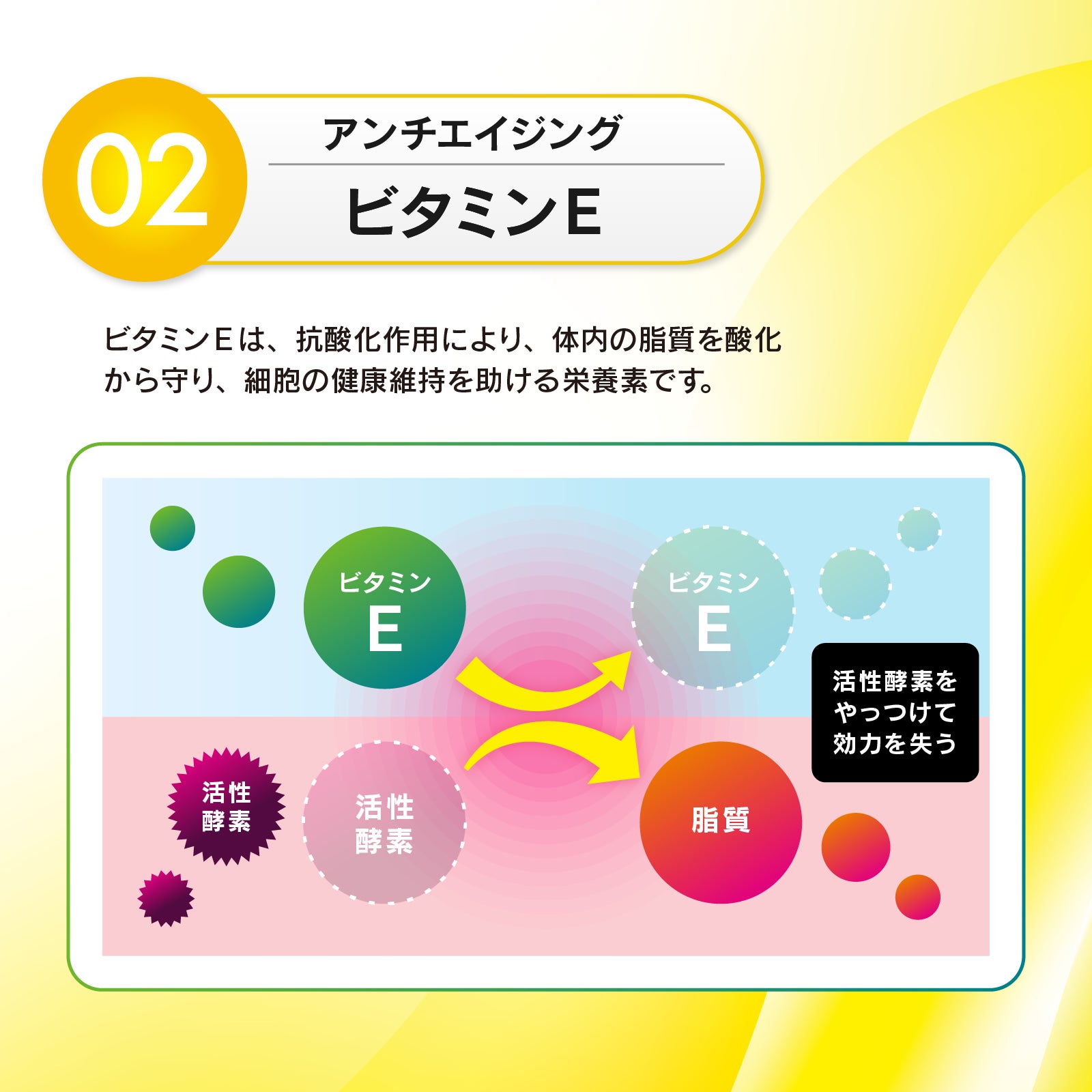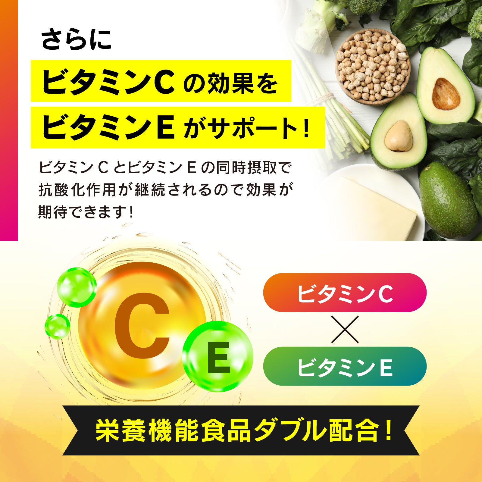 ・ビタミンCとの相乗効果を高めるビタミンE配合でより美しくハリのある毎日を目指せる!