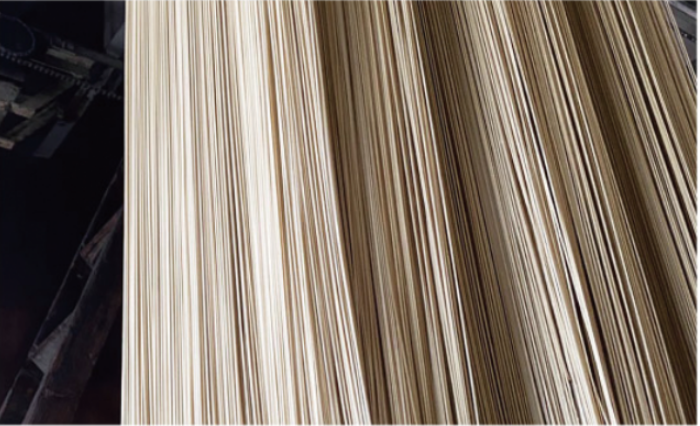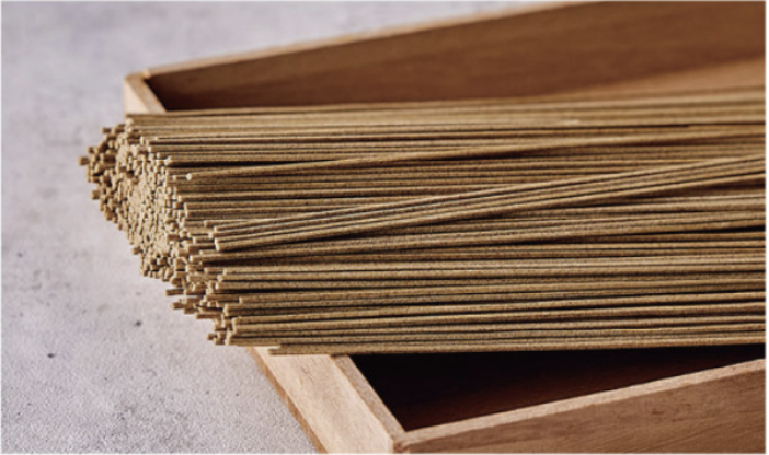 蕎麦粉の配合量が多い乾麺は、麺を繋ぎやすくする小麦粉の量が少ないため、高い製麺技術が求められます。