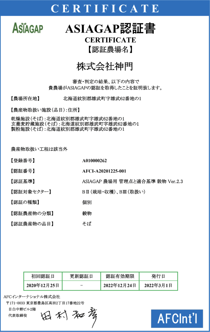 株式会社神門は、北海道オホーツク雄武町でルチン豊富な韃靼(だったん)そばを有機栽培しております。